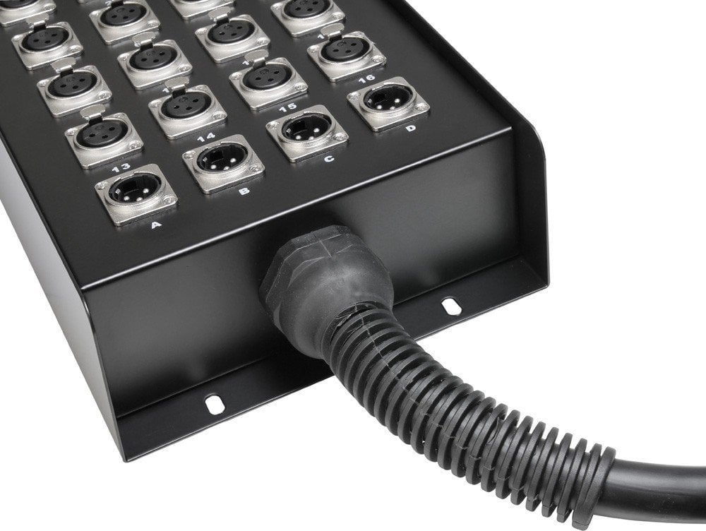 Кабель оснащений вбудованою ручкою для зручності використання та має можливості для постійного монтажу. Додатково, зміцнене з’єднання до роз’ємів запобігає втомі та розриву кабелю. Цей продукт ідеально підходить для шістнадцяти каналів відправлення та чотирьох повернень.
