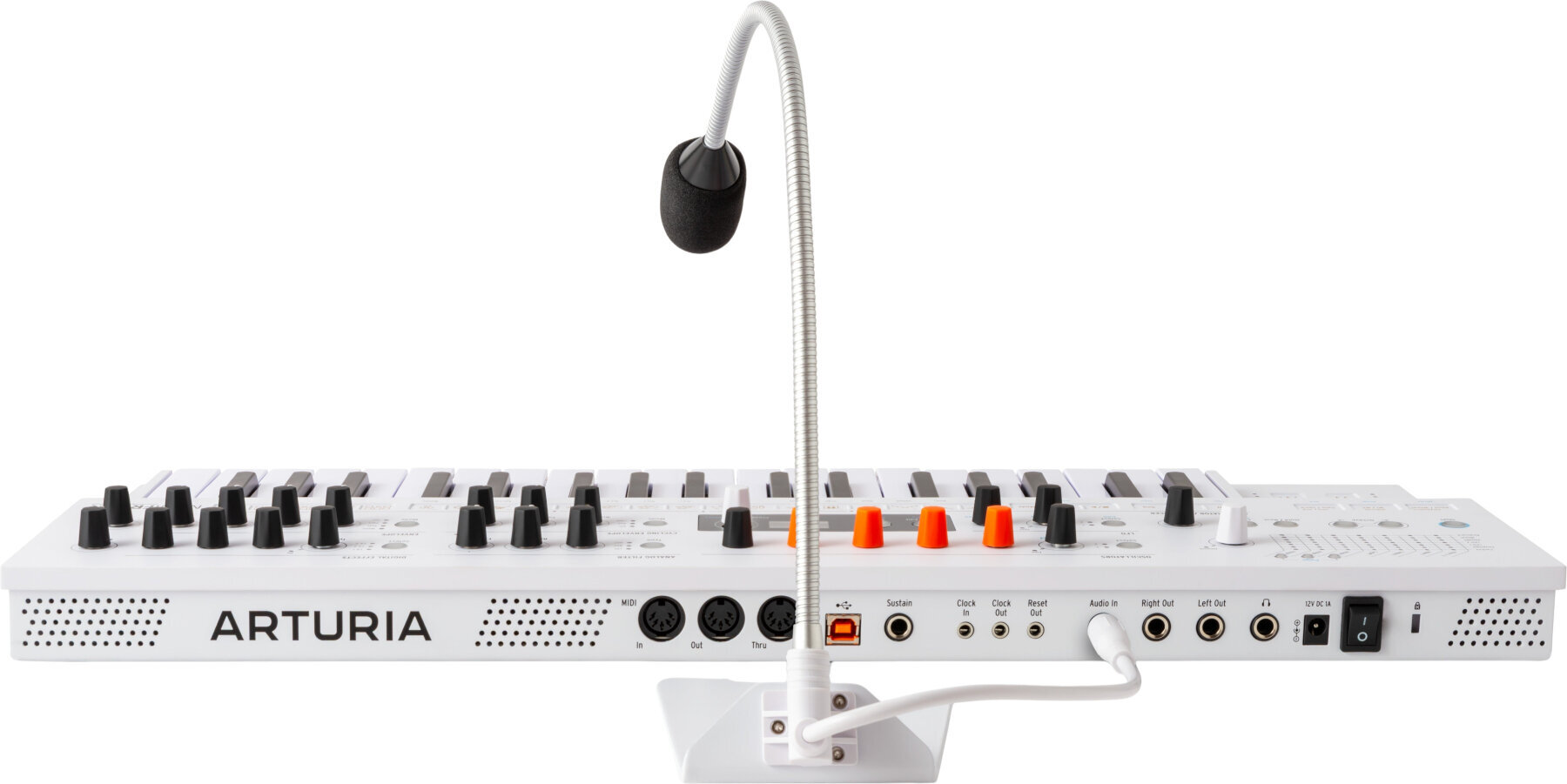 MiniFreak Vocoder переносить безстрашний гібридний синтезатор Arturia у новий вимір вокального звучання. Він зберігає 6-голосну архітектуру, два цифрові двигуни та аналоговий фільтр оригіналу, а також додає від’єднуємий мікрофон на гусиній шиї та 16-смуговий двигун вокодера з безліччю ефектів. Від варчання Talkbox до хорових андроїдів або призракових падів – прокрутіть їх ще більше за допомогою секвенсора, матриці модуляції та ефектів трійного слота для отримання миттєвого, готового до мікшування божевілля.