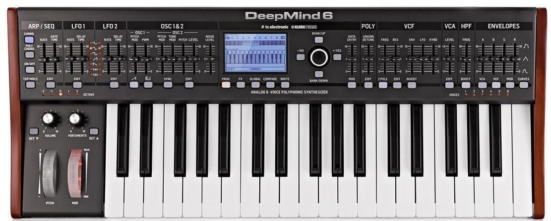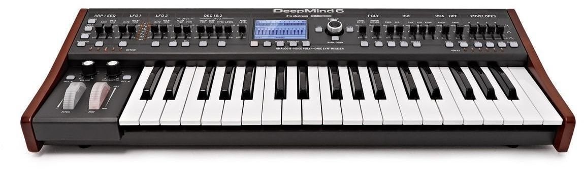 Класичний аналоговий полісинтезатор. Разом з DeepMind 12, Behringer вирішив створити аналоговий полісинтезатор, який без зусиль може забезпечити класичний синтезаторний звук, який ви коли-небудь чули — або уявляли. Тепер ми маємо вдосконалену 6-голосну, 37-клавішну версію — DeepMind 6 — яка поєднує архітектуру та звукові можливості великого брата. Вона містить два цифрово керовані аналогові осцилятори та два LFO на голос, три обвідні, генератор шуму, режим унісону з зручним слайдером Detune, розширену 8-шинову матрицю модуляції, 32-ступеневий секвенсор, чотири цифрові FX-двигуни, вбудований Wi-Fi, оксамитову клавіатуру з підтримкою Aftertouch, а також Behringer DeepMind 6 — це цінний інструмент з серйозною силою синтезатора, який зробить вас музичною силою, з якою потрібно рахуватися.