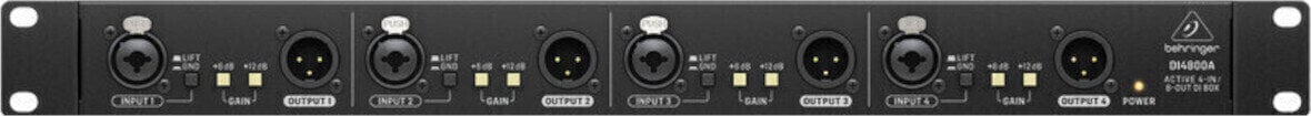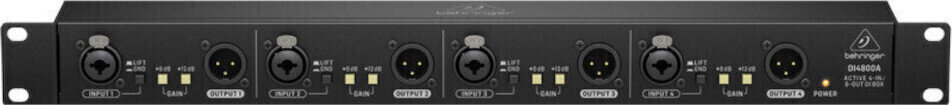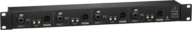 DI4800A підносить DI box на новий рівень, забезпечуючи перемикачі підсилення +6 dB та +12 dB, що в сумі дає +18 dB підсилення, ідеально підходить для підсилення сигналів з низьким рівнем. DI4800A також оснащений перемикачем загасання -20 dB на канал, позолоченими вихідними з’єднаннями XLR, які забезпечують надійну, безшумну роботу, а також перемикачами підняття маси на канал, щоб усунути проблеми з заземлювальними петлями.