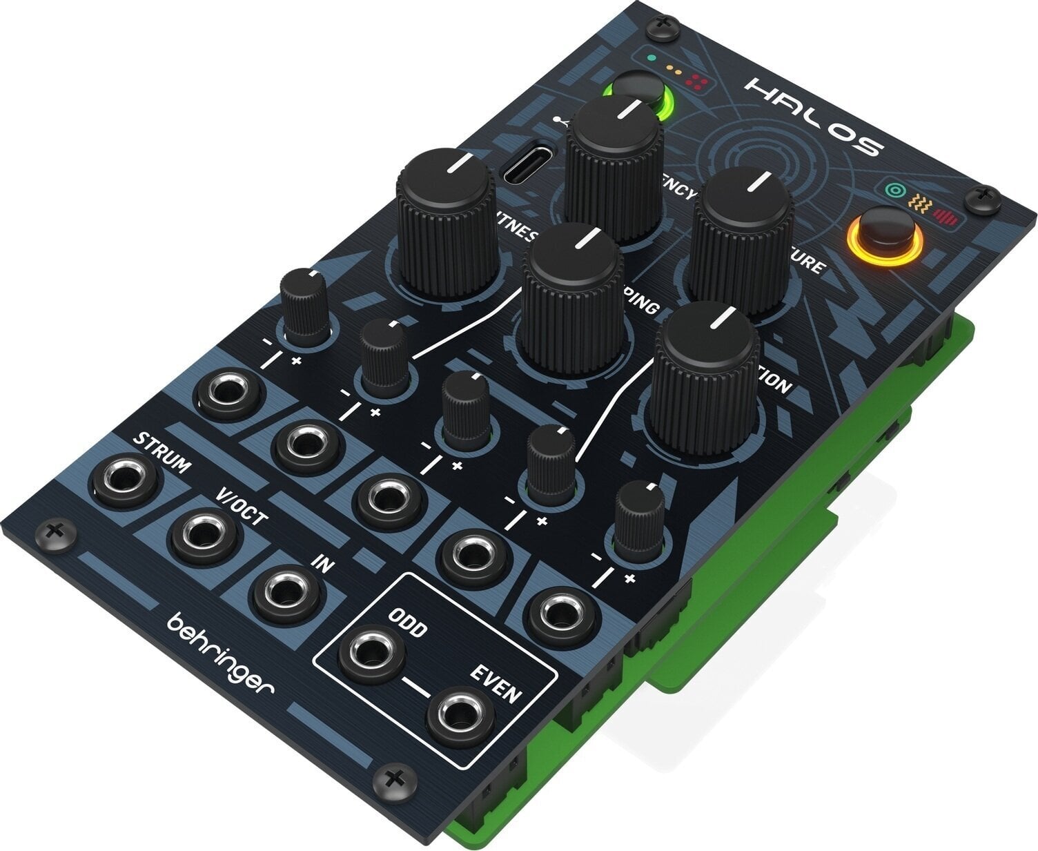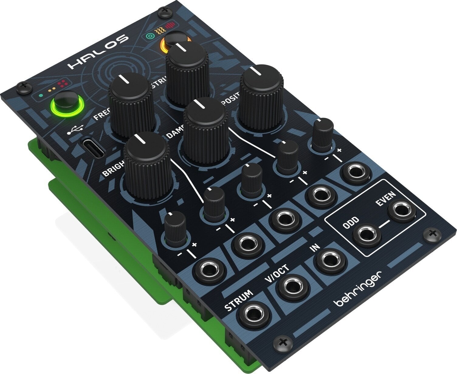 Модуль HALOS був розроблений так, щоб підходити до корпусу Eurorack. Просто підключіть живильні кабелі до блоку живлення та встановіть модуль за допомогою наданих гвинтів. З’єднайте модуль HALOS з іншими модулями у вашій системі та почніть створювати унікальні звучання, які нададуть вашій музиці особливого характеру.