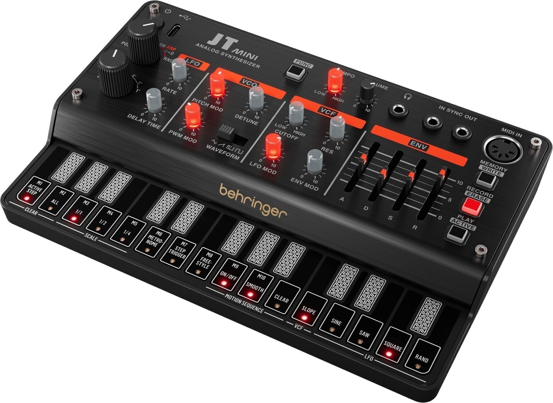 Behringer JT MINI натхнений класичним синтезатором Jupiter. Він має VCO з 4 вибиральними сигналами, включаючи пилу, трикутник, квадрат і імпульс. Ви також можете вибирати між поліфонічним або унісонним режимами, а також арпеджіо Up, Down, Up and Down або Random.