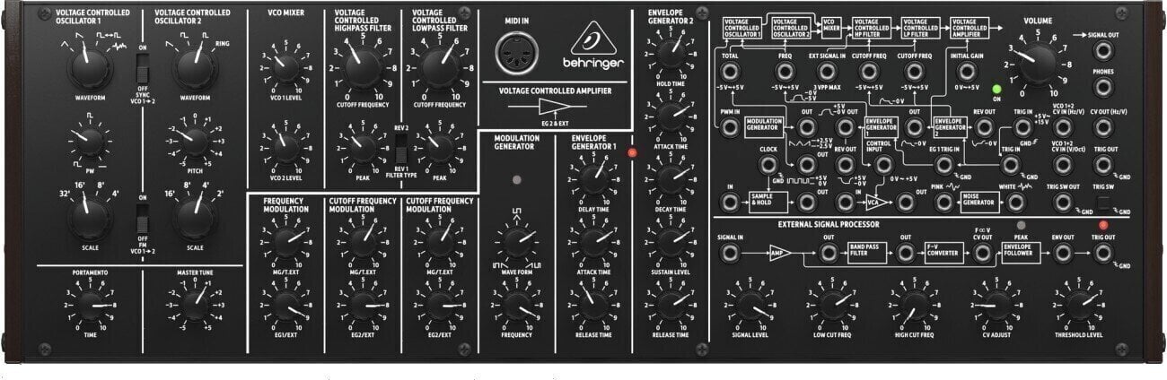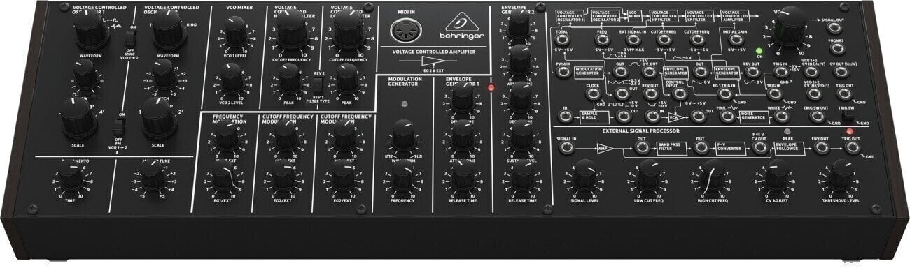 Чиста аналогова траса сигналу, основана на оригінальних конструкціях VCO, VCF та VCA.