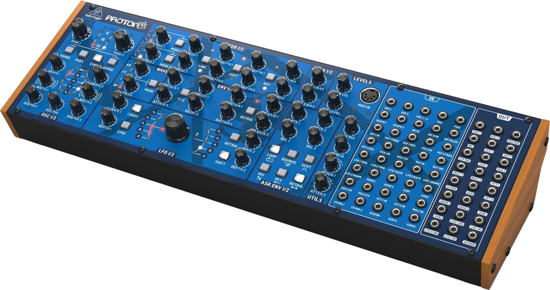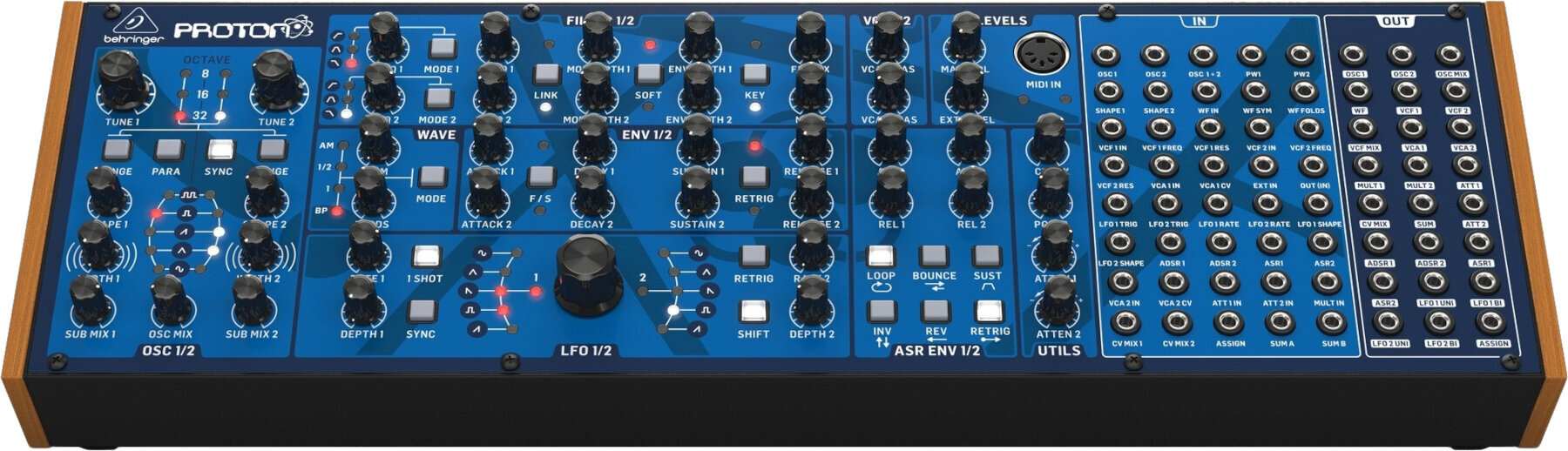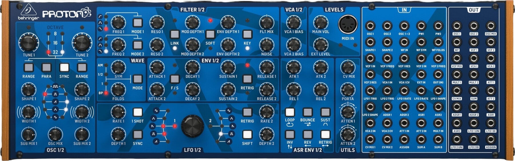 Два самоосцилюючі, багатофункціональні VCF PROTON можна налаштувати паралельно або послідовно, з можливістю з’єднання CV для ще більших можливостей. Дві обгортки ASR, кожна з опціями реверсу/зворотного/петлі/відбиття, надають контроль над VCA та хвильовими формами, тоді як два аналогові генератори ADSR забезпечують виняткову продуктивність звуку через модуляцію VCF.