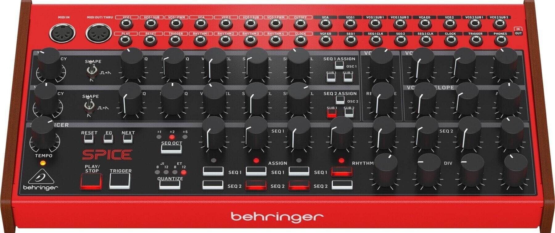 Behringer SPICE — це аналоговий півмодульний синтезатор поліритмічний та субгармонічний, призначений для створення неймовірно насичених та складних секвенцій. Оснащений двома VCO з субосцилятором, багатофункціональним фільтром та двома 4-ступеневими секвенсерами з генераторами поліритміки, SPICE пропонує унікальний підхід до дизайну звуку.