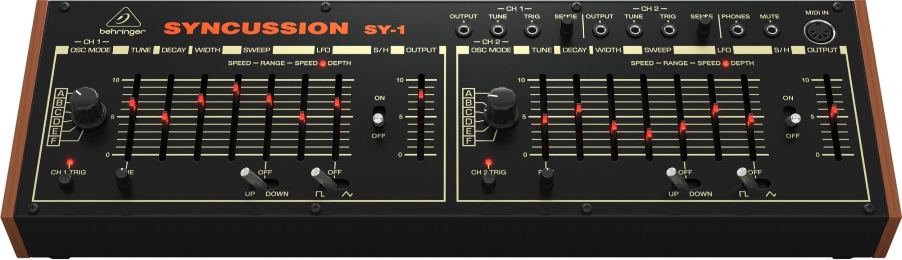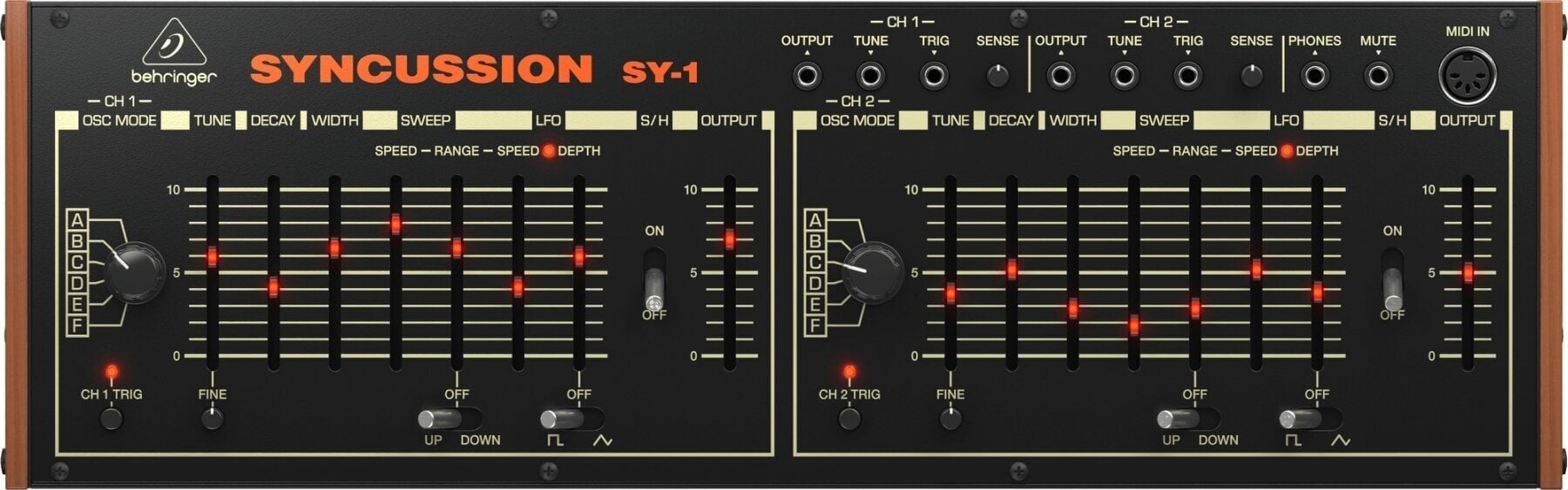 Behringer SYNCUSSION SY-1 — це сучасна інтерпретація класичного аналогового синтезатора ударних 70-х років XX століття, розроблена для того, щоб пропонувати музикантам культові звуки тієї епохи без високих витрат на вінтажне обладнання.