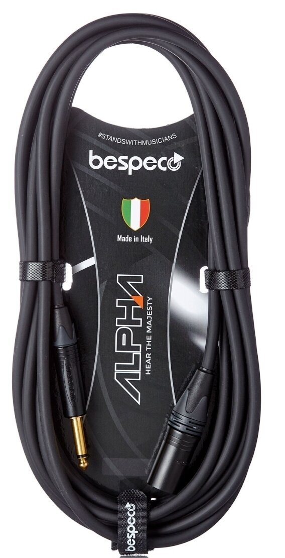 Активний кабель для динаміків. Несиметричний екранований кабель серії Alpha, призначений для активних динаміків, виготовлений з одного роз’єму Neutrik моно 6,3 мм та одного штекера Neutrik XLR. Завдяки вражаючій якості звуку серія Alpha компанії Bespeco рекомендується в будь-якій ситуації, що вимагає максимальної вірності передачі сигналу, як в частотному діапазоні, так і в амплітуді сигналу.