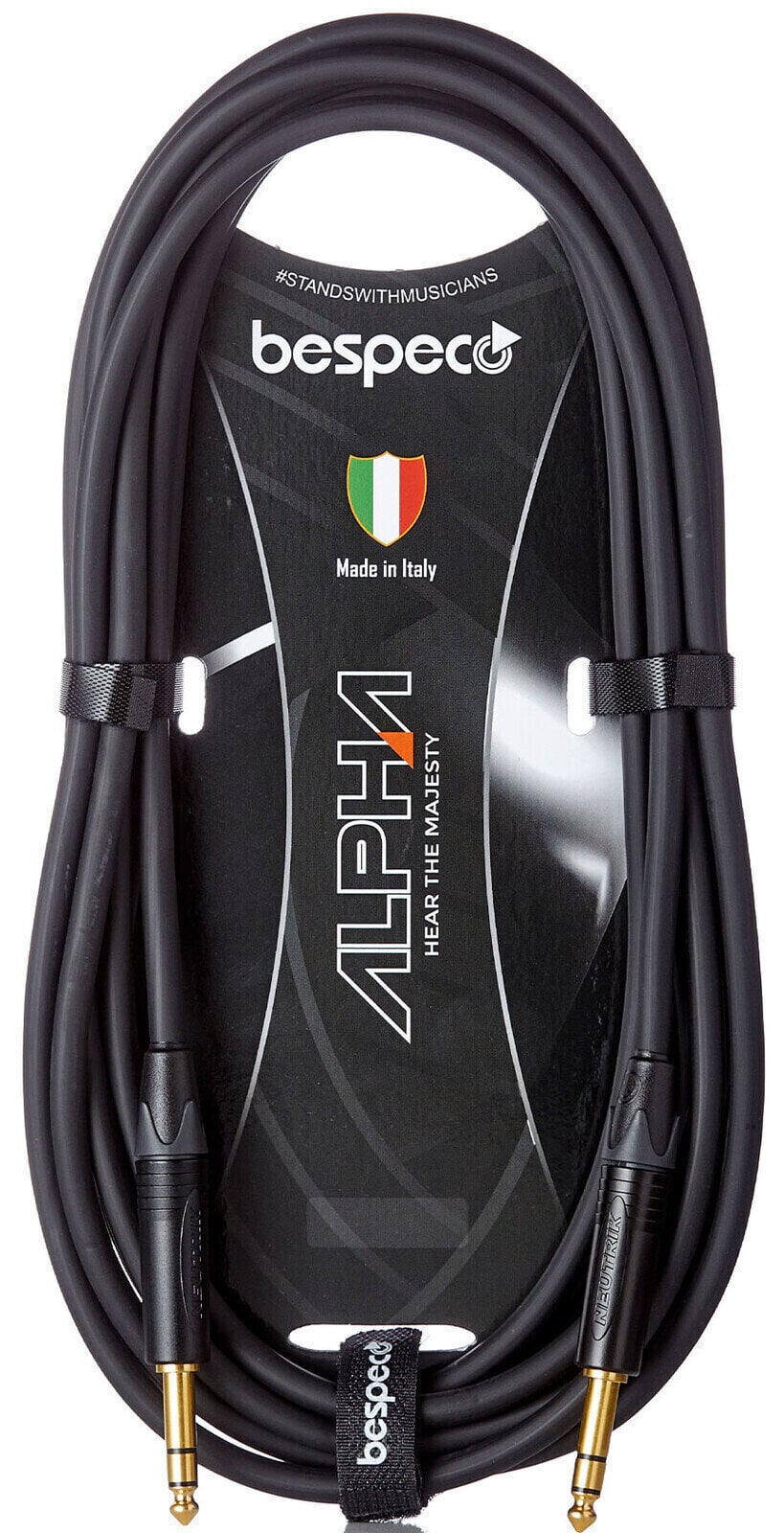 Прямий інструментальний кабель. Екранований кросовий кабель серії Alpha для музичних інструментів, виготовлений з двох з’єднань TRS Neutrik 6,3 мм. Завдяки вражаючій якості звуку серія Alpha компанії Bespeco рекомендована в кожній ситуації, що вимагає максимальної вірності передачі сигналу, як у діапазоні частот, так і амплітуди сигналу.