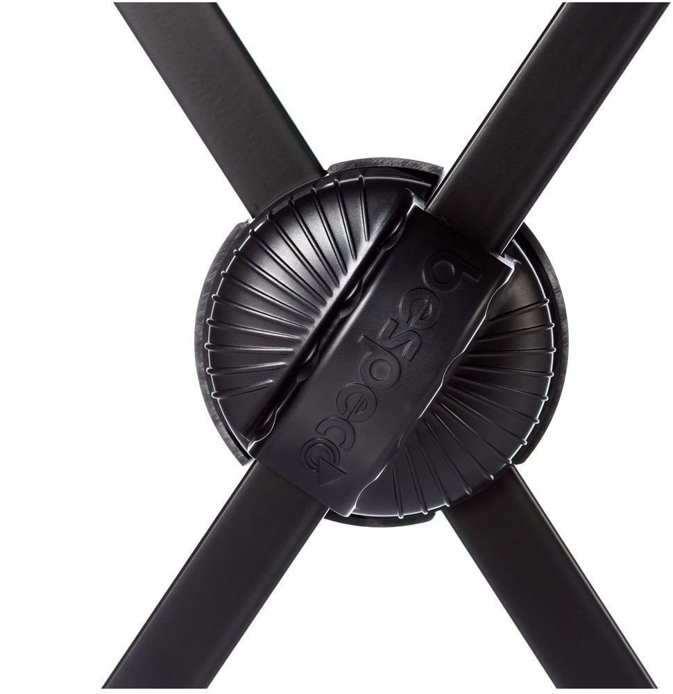 Професійна клавішна стійка з серії KS, у формі літери X, з регулюванням висоти (мін. ~48 см до макс. ~98 см) та ширини (мін. ~25 см до ~88 см).