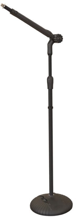 Простий мікрофонний статив з круглою основою та додатковою рукою. Основу діаметром 24,5 см виготовлено зі сталі, з гумовою підкладкою проти ковзання.