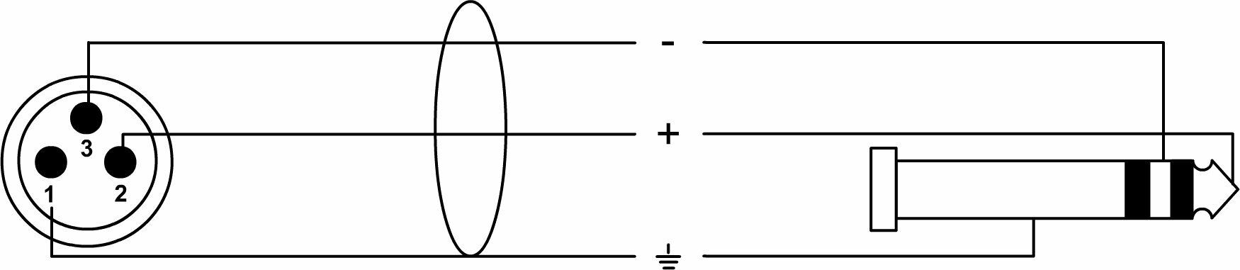 Кабель з чоловічим роз’ємом XLR та збалансованим роз’ємом типу jack є найчастіше використовуваним для мікрофонних та лінійних сигналів, і він надзвичайно стабільний та надійний. Може використовуватися як з’єднання між активним динаміком та мікшерним столом.