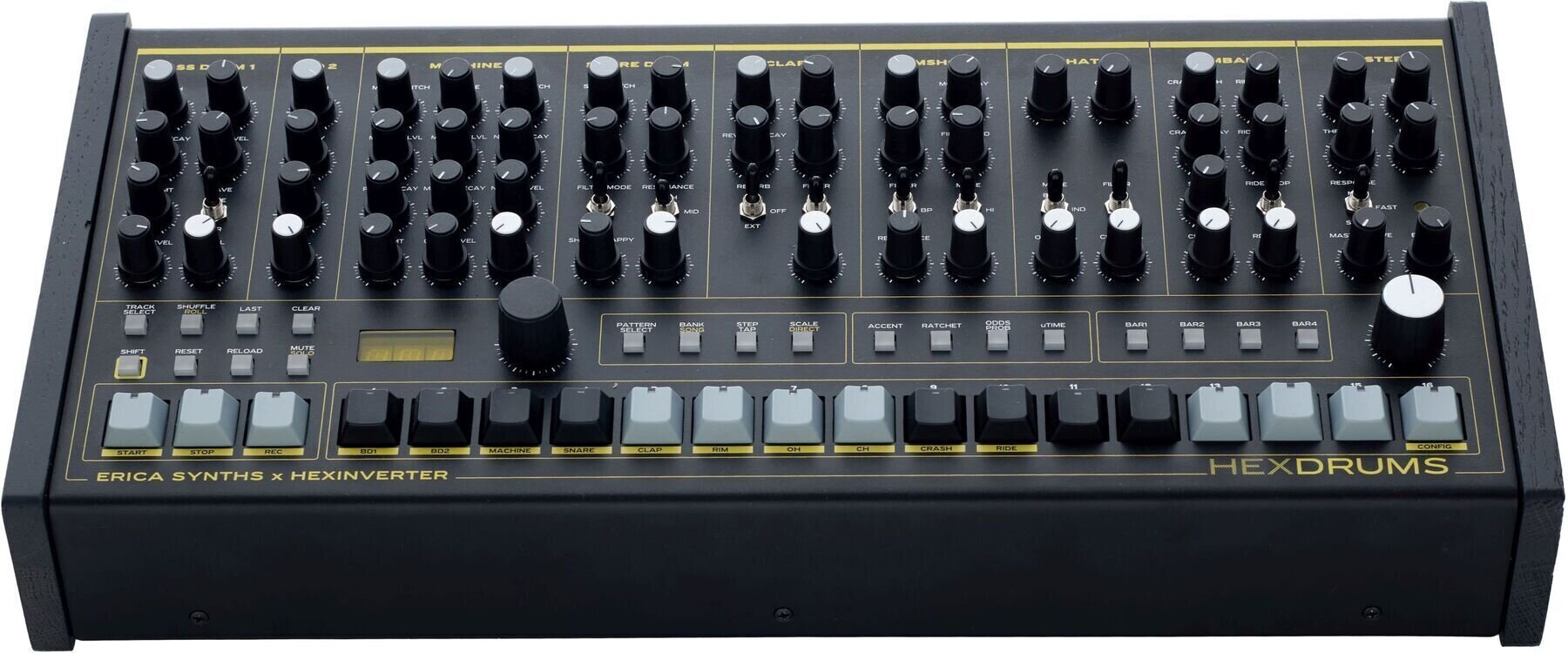 Hexdrums від Erica Synths — це унікальний перкусійний автомат, який поєднує в собі інноваційні технології та високу якість звуку. Цей пристрій ідеально підходить для створення ритмічних партій у різних музичних жанрах.