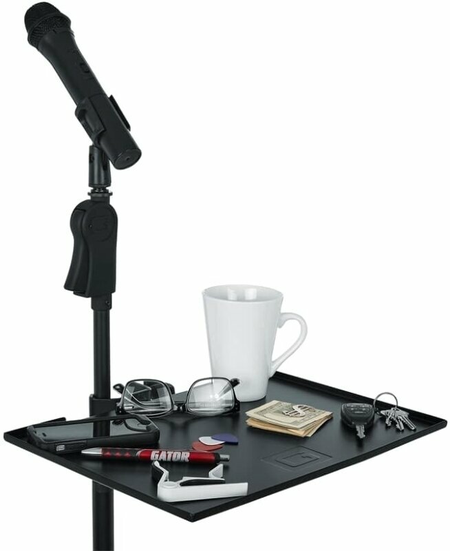 Півка монтажна для мікрофонного штатива з поверхнею 11″ x 15″. Підвищені краї запобігають переміщенню предметів, що робить її ідеальною для зберігання середніх ноутбуків та аксесуарів.