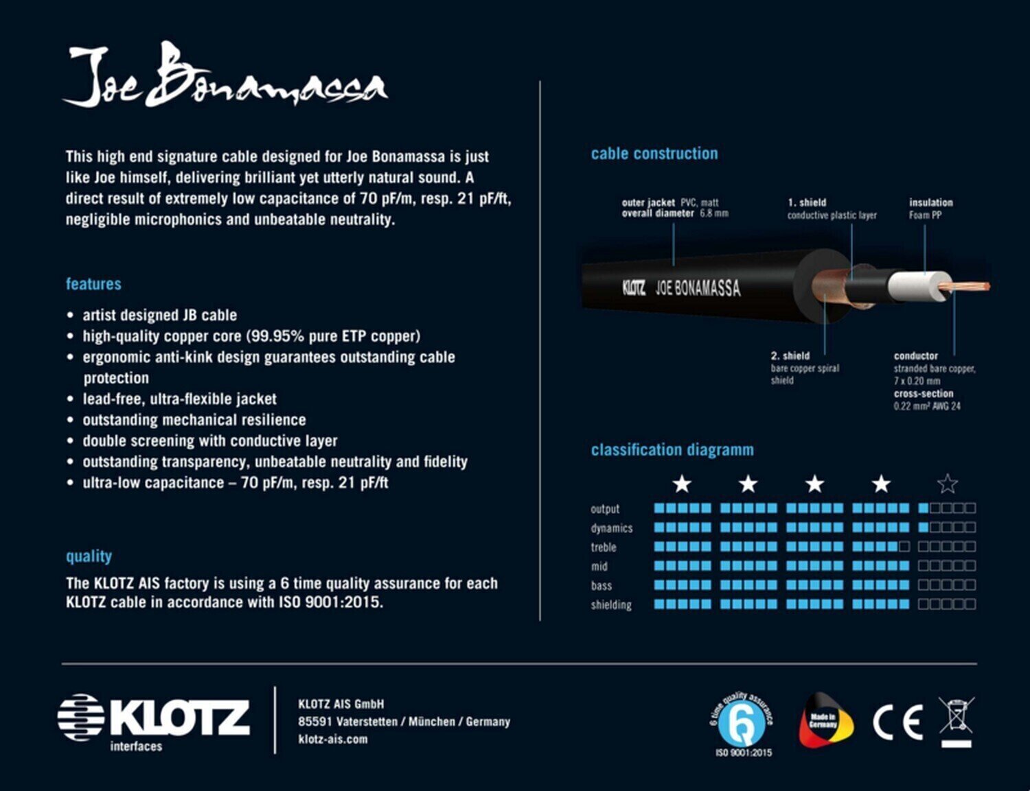 Обирайте Klotz JBNPP060 для професійного використання та насолоджуйтесь якісним звучанням вашої гітари!