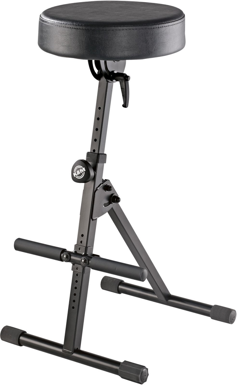 Стілець для музикантів, який поєднує в собі стиль та функціональність. Кут нахилу круглої, обшитої штучною шкірою сидушки можна регулювати різними способами. Для забезпечення більшого комфорту підніжка також регулюється за висотою.