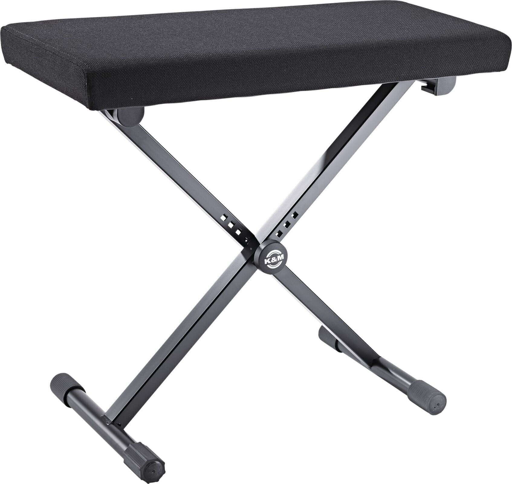 Цей надзвичайно широкий стільчик для клавіатури виготовлений з міцної сталевої труби, має регульовану висоту та стабільну конструкцію без хитання. Він складається для зручного транспортування, а сидіння виконане з чорного шкірозамінника або зносостійкої чорної тканини розміром 650 x 300 мм. Висота стільчика може регулюватися від 415 до 610 мм. Вага: 6,32 кг.