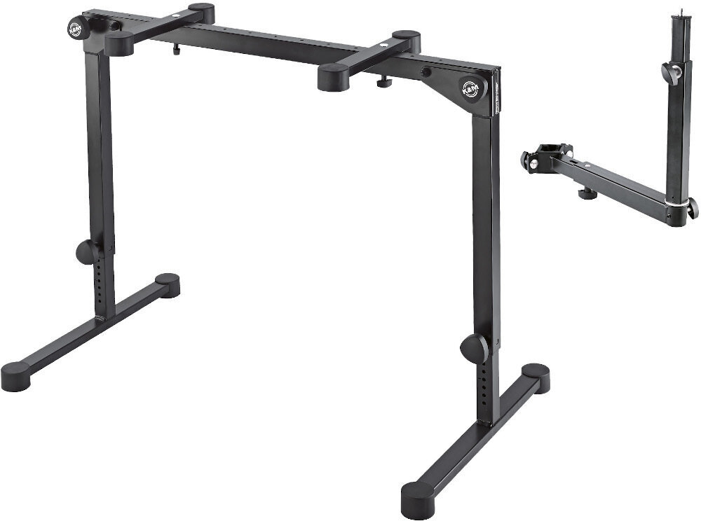 Тримач має плавну регуляцію висоти та відстані і може бути встановлений індивідуально на будь-якій ніжці опорної стійки для клавіатури.