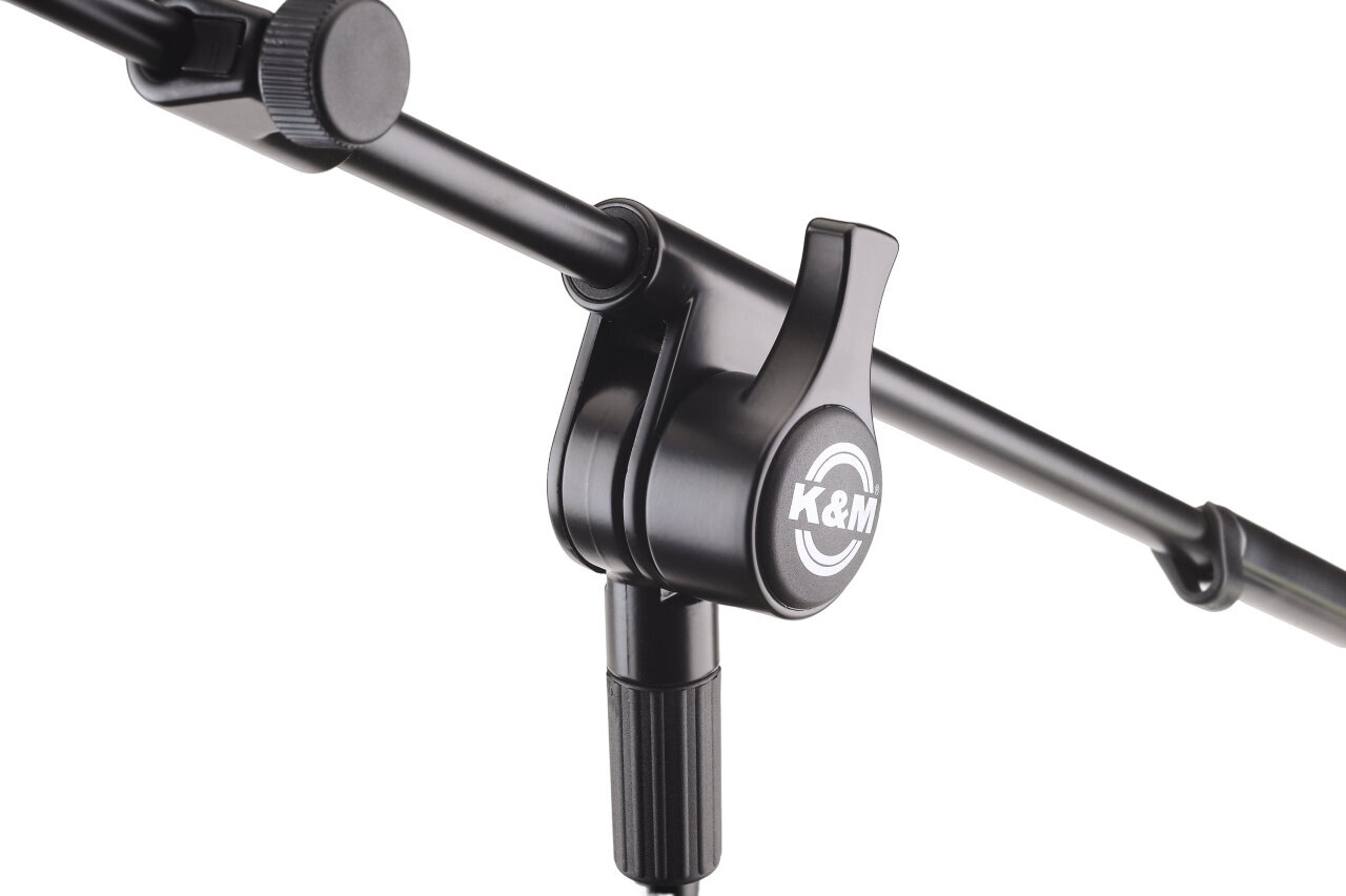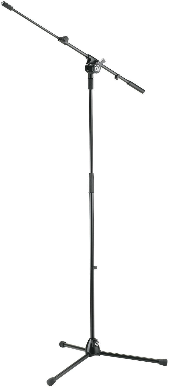 Статив мікрофонний з телескопічною рукою, литою основою, з гніздом та складаними ніжками. Елегантний дизайн, висока міцність різьблення з’єднань та конструкції. Статив оснащений можливістю фіксації кабелю.