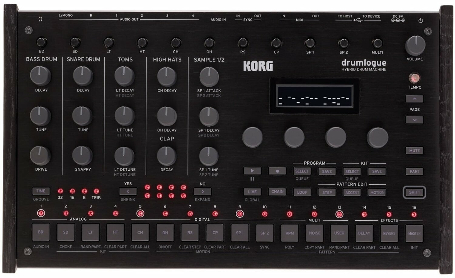 Drumlogue був спроектований, щоб забезпечити ідеальний аналоговий звук для ваших біту та гарантує фантастичний результат; з абсолютно новими аналоговими схемами, розробленими легендарним інженером команди аналогових синтезаторів Korg, Junichi Ikeuchi (ARP 2600 M, MS-20 mini, ARP Odyssey…), глибина та багатство звучання на зовсім новому рівні.