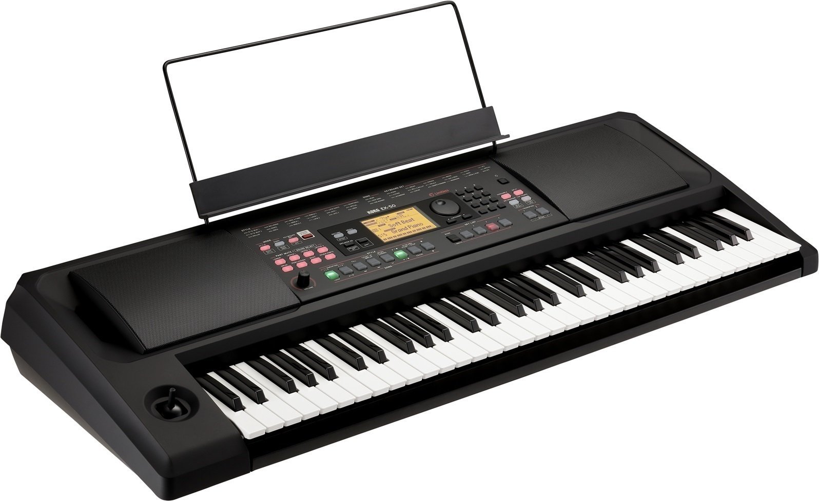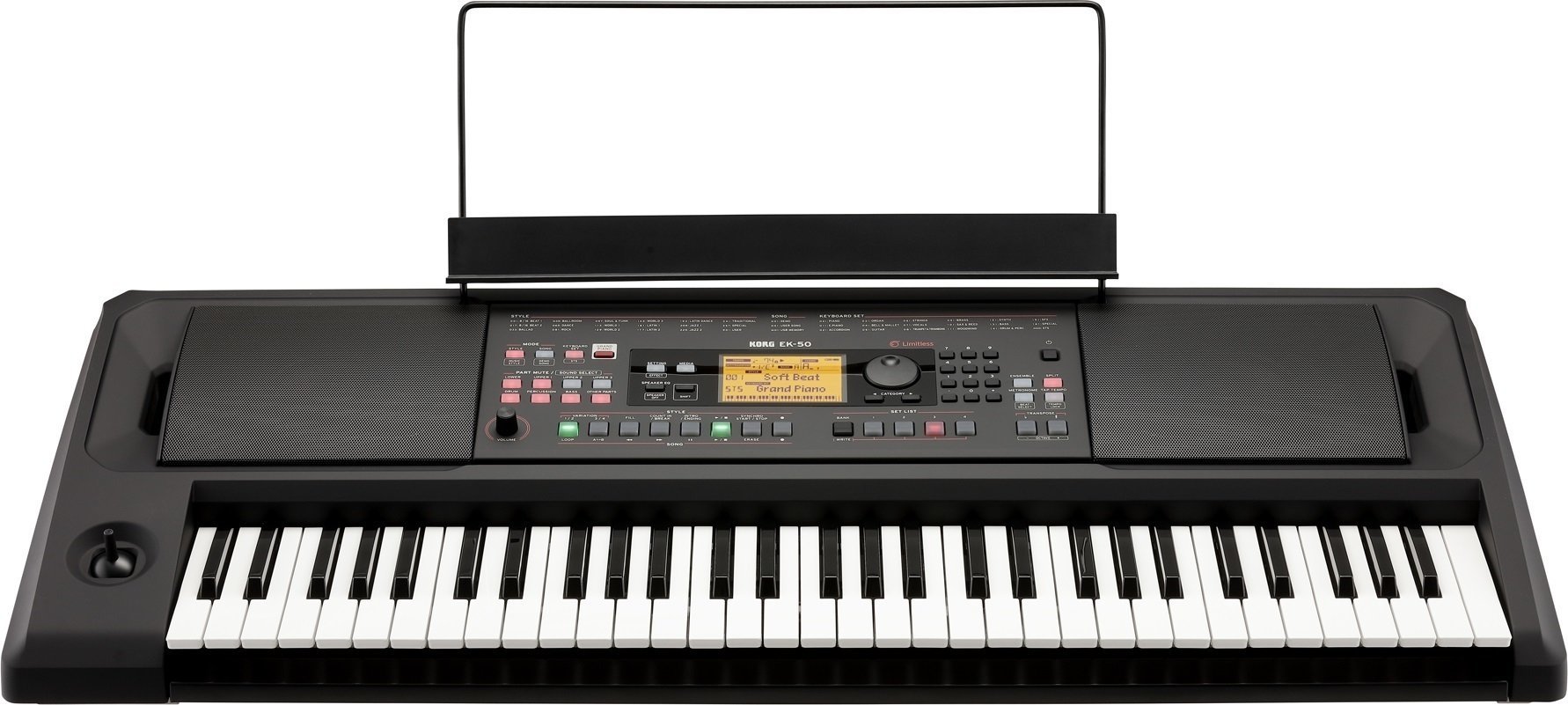 KORG EK-50 – це базова модель автоматичної клавіатури з провідником, яка тепер доступна в спеціальному дизайні. Вона оснащена високопродуктивними динаміками, що полегшують відтворення звуку в кафе або на виступах малих виконавців без необхідності носити важку звукову систему.