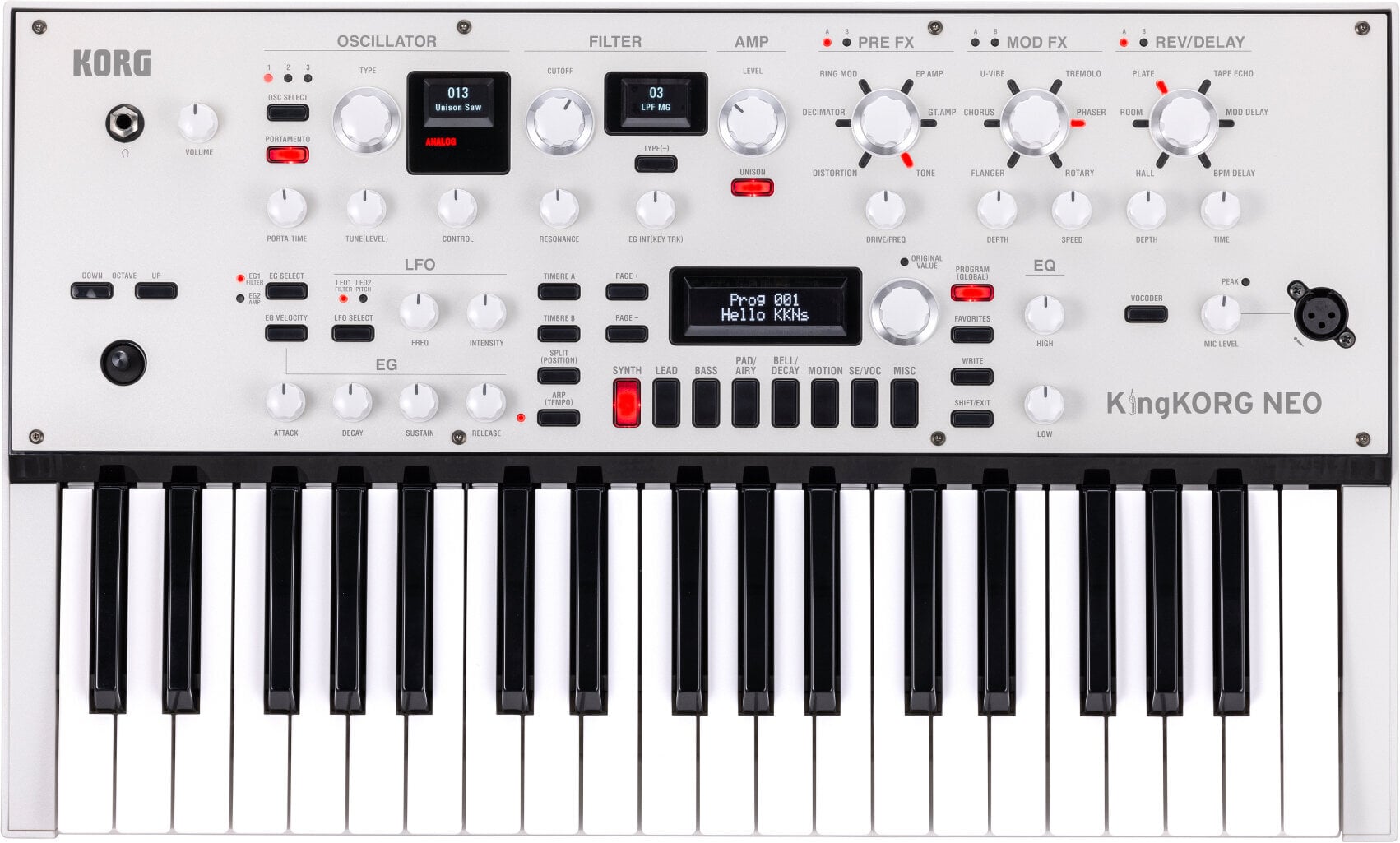 Завдяки легендарному звуковому двигуну XMT, величезному вибору синтезаторних фільтрів, 37 повнорозмірним клавішам, динамічному вокодеру та набору зручних для користувача функцій, KingKORG NEO виходить за межі синтезу і є універсальним інструментом для артистів, які прагнуть досліджувати нові звукові простори та розширювати межі музичної креативності.
