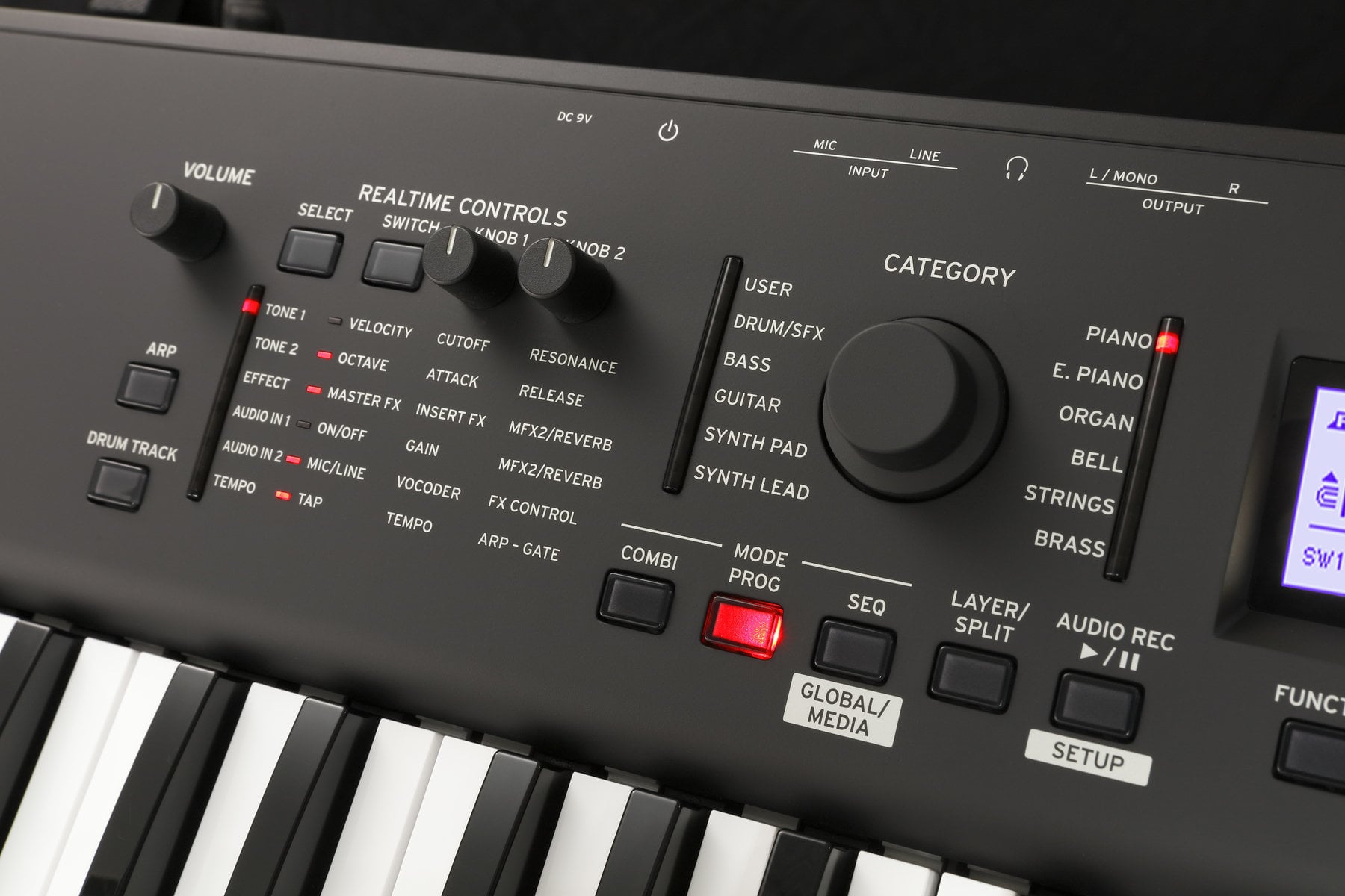 Інструмент має 61 клавішу, що відповідає 5 октавам, забезпечуючи широкий діапазон звуків для різних музичних застосувань.