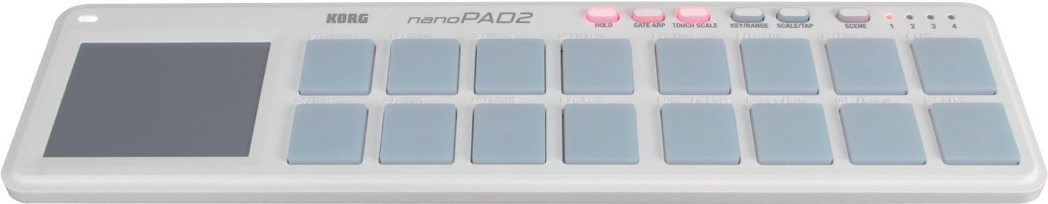 Сенсорна панель може працювати в обраній масштабі та діапазоні, а також підтримує класичний режим X/Y, режим Gate Arpeggiator та Touch Scale. Контролер має 4 записувані сцени, що дозволяє зберігати улюблені налаштування для швидкого доступу. NanoPAD2 працює з Korg Kontrol Editor Software, що робить налаштування ще простішим.