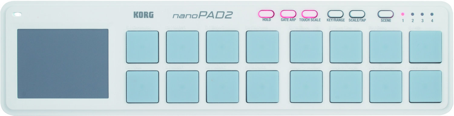 Серія nano KORG – це мініатюризований контролер MIDI, який ідеально підходить для музикантів та продюсерів. NanoPAD2 обладнаний 16 динамічними падсами та сенсорною поверхнею, яка, подібно до Kaossilator, виконує функцію “клавіатури”.