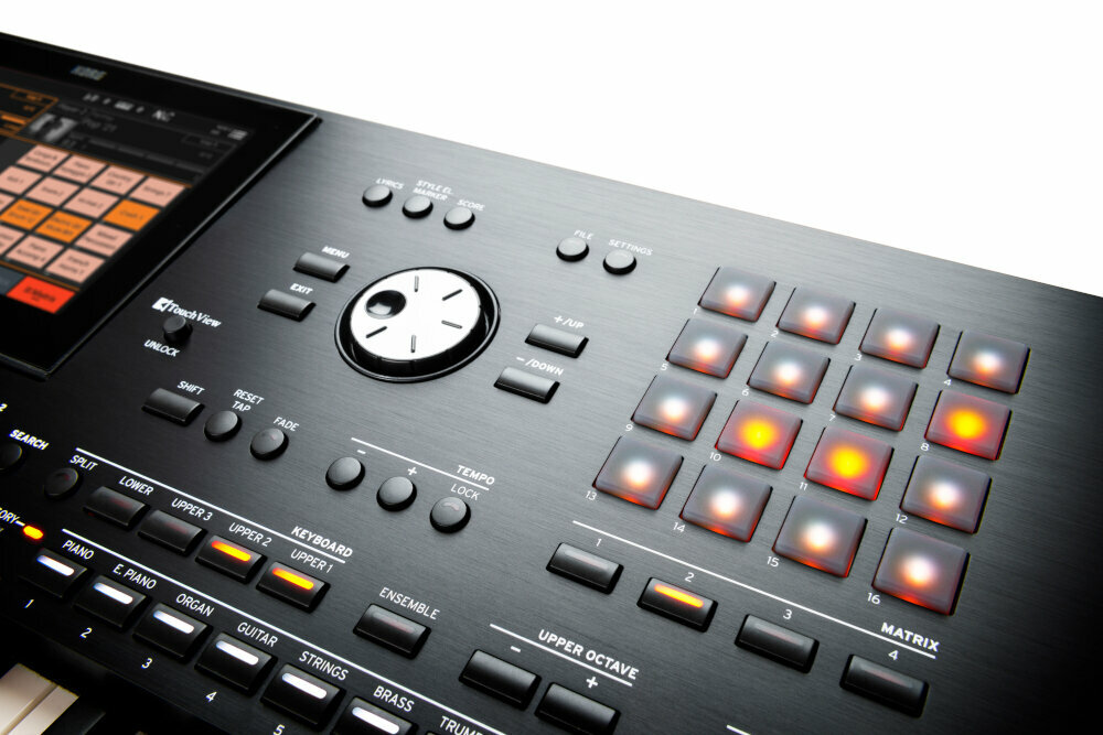 Pa5X містить тисячі надихаючих звуків та сотні свіжих стилів, які миттєво доступні через зручний робочий процес. Повністю нова передня панель з налаштовуваною матрицею падів та секцією мікшера, багатоколірними LED-кнопками та величезним, нахиленим сенсорним екраном надає вам повний контроль над створенням музики в будь-який час. Pa5X виділяється як інструмент для живих виступів, так і як потужний творчий інструмент у студії, дозволяючи знайти ідеальний звук незалежно від того, куди вас заведе музика.