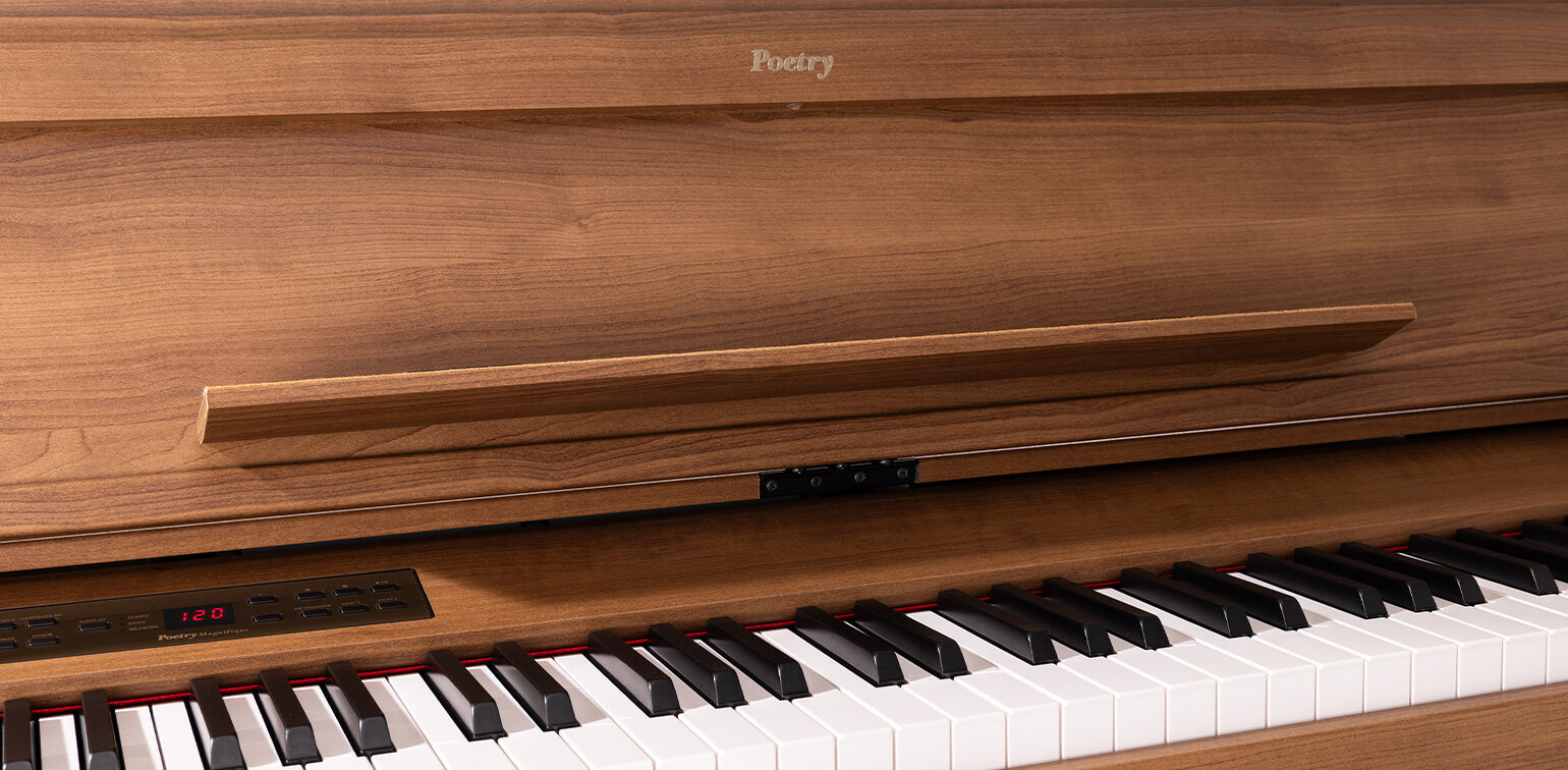 Poetry Magnifique продовжує традицію нагородженої кришки, яка після закриття перетворюється на ідеально плоску поверхню. Коли ви не граєте, піаніно виглядає як один солідний, елегантний панель, що гармонійно поєднується з вітальнею або будь-яким стильним інтер’єром.