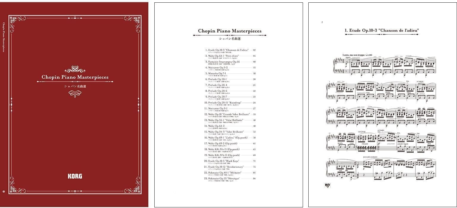 Цей інструмент містить 50 демонстраційних творів Шопена. Літера “P” позначає, що твір відтворюється на піаніно PLEYEL (430 Гц), а літера “I” – що він відтворюється на італійському концертному піаніно.