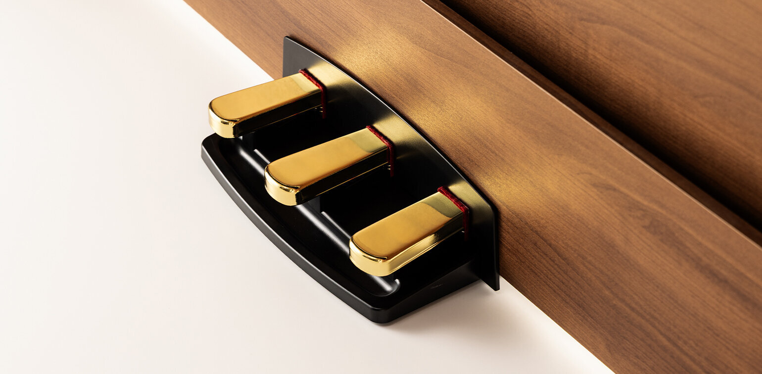 Остання еволюція зберігає два культових звучання піаніно та елегантний дерев’яний декор, одночасно впроваджуючи новий дизайн. Бокові панелі з масиву дерева не лише забезпечують розкішний вигляд, міцність та резонансні властивості корпусу інструмента, але й містять нову розроблену силову одиницю, завдяки якій кожна нота набуває ще більшої глибини та багатства.