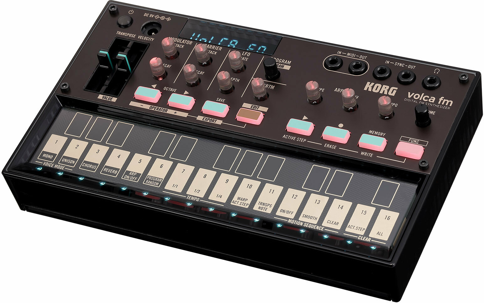 Новий модель Volca FM відповідає традиції volca і доступна в маленькій, портативній версії, яку ви можете взяти з собою куди завгодно. Вона дуже практична, з багатьма ручками регулювання звуку в реальному часі, працює на 6 батареях AA, має вбудований динамік, важить лише 360 г (без батарей) і ідеально підходить для самостійного використання. Крім того, завдяки роз’ємам SYNC IN-OUT та MIDI IN-OUT, вона безпроблемно інтегрується з обладнанням для живих виступів, студією виробництва та, звичайно, будь-яким іншим пристроєм.