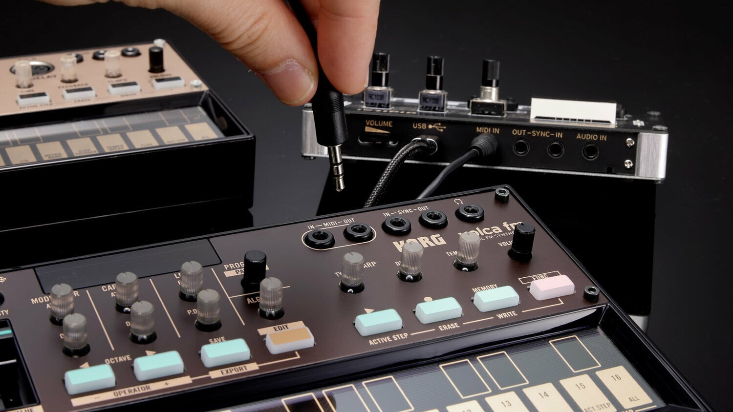 Окрім MIDI IN, новий селектор FM також містить MIDI OUT (IN / OUT 3,5 мм TRS), що дозволяє використовувати інтуїтивний внутрішній секвенсер Volca для керування іншими пристроями через MIDI, що робить його ідеальним доповненням до самостійного налаштування. Звичайно, він також добре працює з вибраною DAW, надсилаючи ноти, налаштування та синхронізацію через MIDI IN.