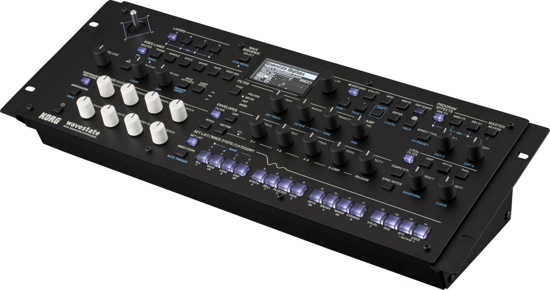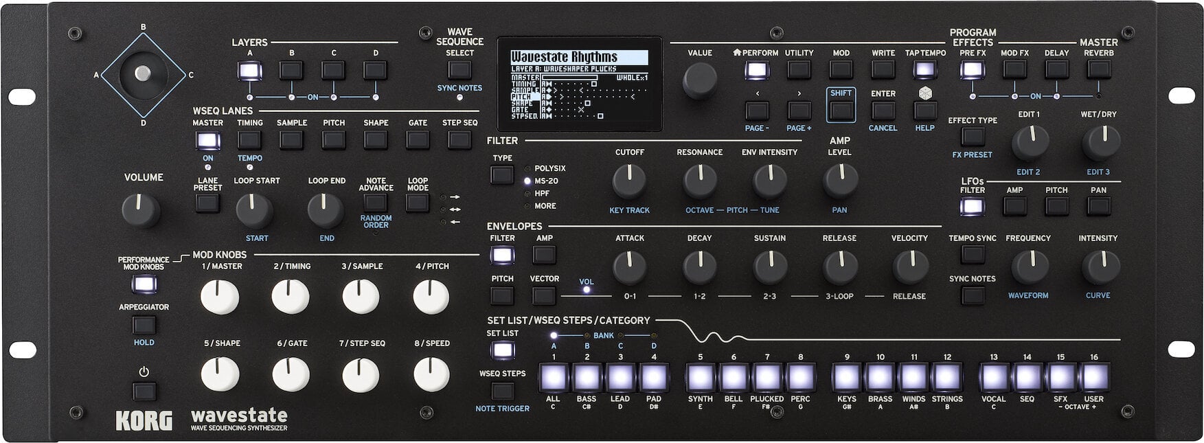 Представляємо модуль Wavestate – усі функції Wavestate mkII в компактному 19-дюймовому пакеті для монтажу на столі/в шафі. У 2020 році визнаний Wavestate підняв Wave Sequencing компанії KORG на новий рівень. Оснащений радикально переробленим Wave Sequencing 2.0, Wavestate забезпечує вражаючі, постійно змінювані звуки з широким, практичним контролем.