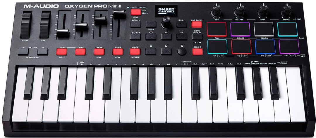 Oxygen Pro Mini — це ідеальний інструмент для кожного музиканта, який поєднує в собі розширені функції з інтуїтивно зрозумілим інтерфейсом, що дозволяє створювати музику в будь-якому місці та в будь-який час!