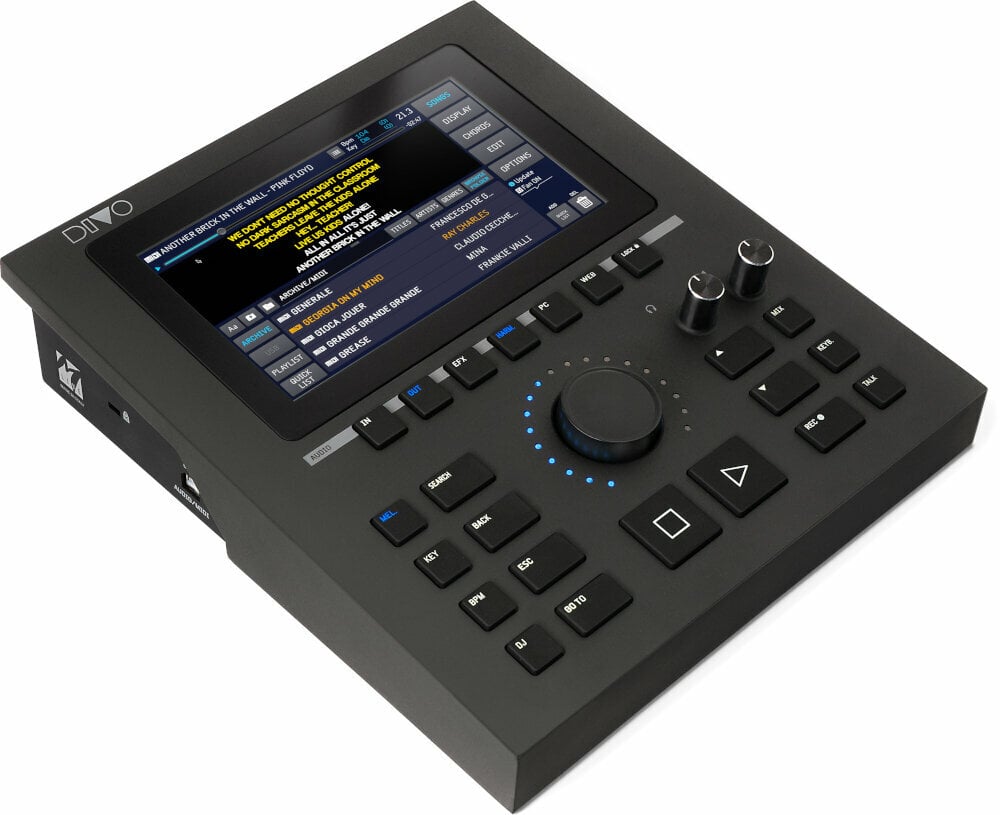 DIVO — це високопродуктивна робоча станція, призначена для сольних виконавців або малих ансамблів. Це компактний пристрій, що містить усі необхідні функції для живих виступів з підтримкою фонограм, як Midi, так і Audio. З DIVO вам не потрібен мікшер, ефекти, і що найголовніше, комп’ютер, адже він може відтворити будь-яку фонограму.