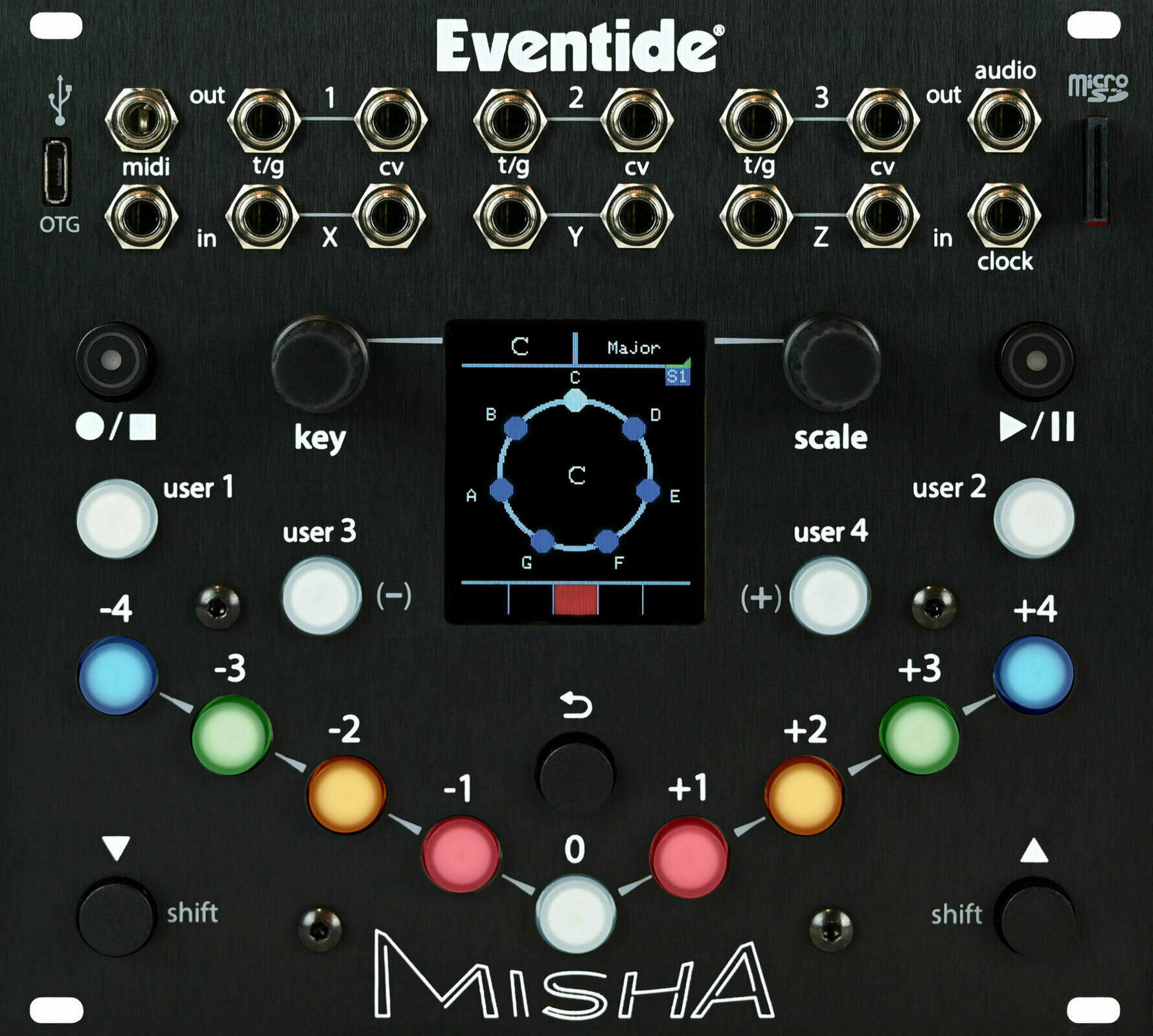 Misha — це інноваційний інструмент/sequencer Eurorack, який використовує унікальний, інтервальний підхід до гри та створення мелодій. Він розроблений для гри, як на клавішному інструменті, проте створює музику у спосіб, який не схожий на жоден попередній інструмент. Окрім живого виконання, ви також можете записувати секвенції, які можна модифікувати різними способами, відкриваючи нові шляхи спонтанної креативності.