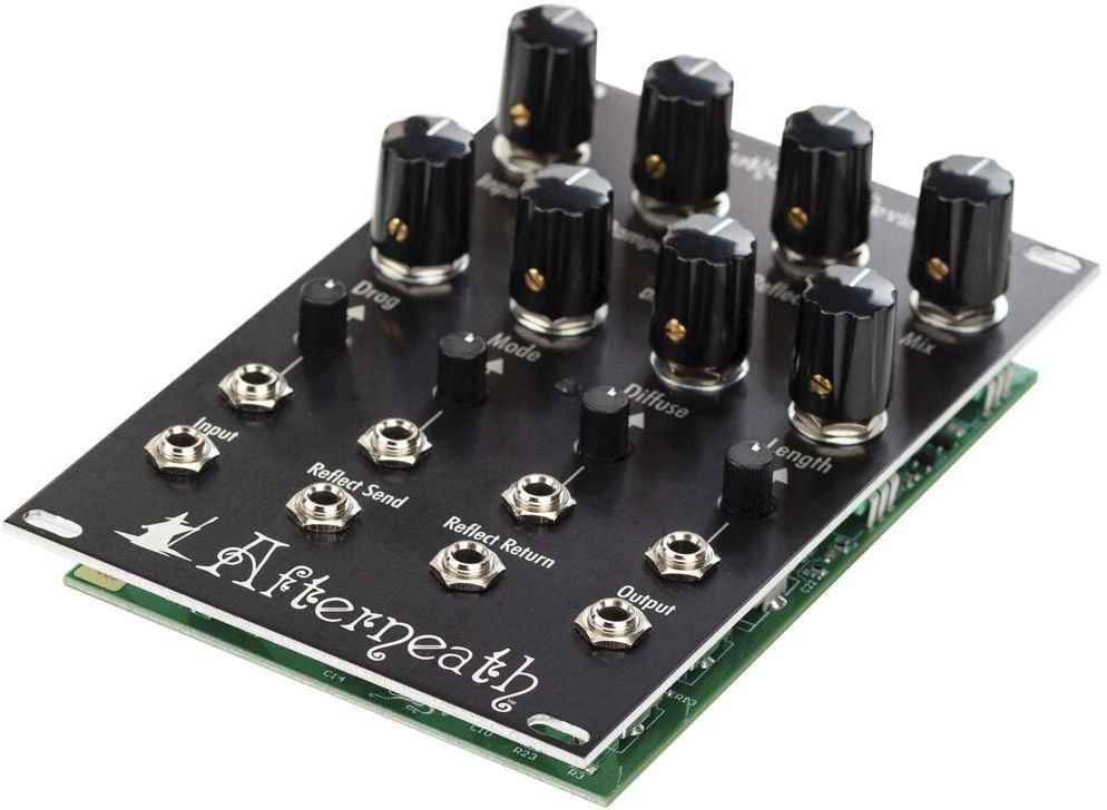 Чотири параметри можна контролювати за допомогою CV, а кожен з них оснащений спеціальним атенюатором для обробки вхідного CV. Модуль Afterneath має повністю аналоговий шлях сухого сигналу та повністю цифровий шлях вологого сигналу.