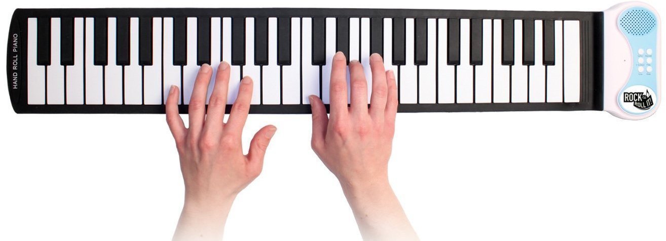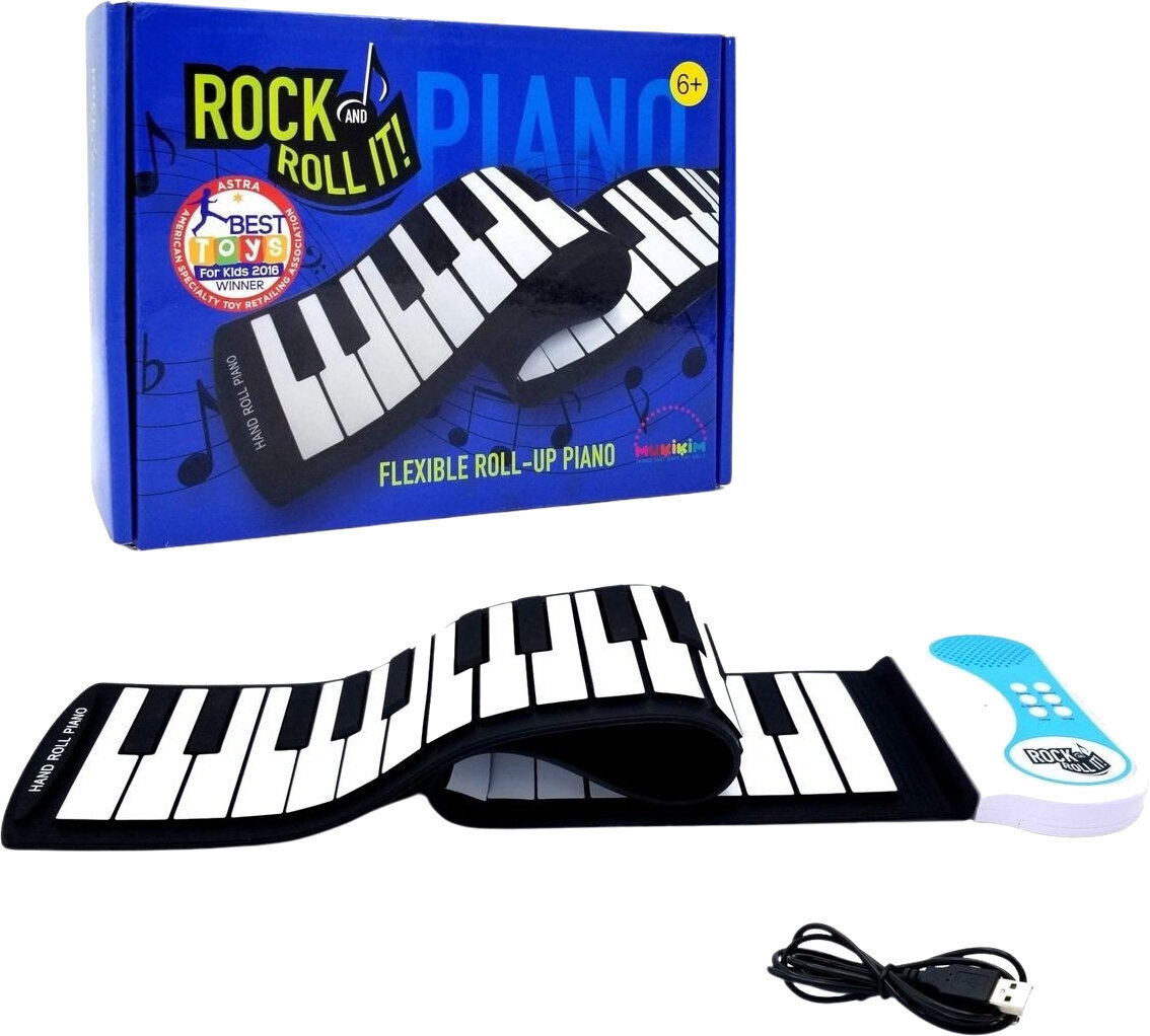 Еластичне та портативне піаніно з серії Rock and Roll It, ідеальне для початківців музикантів, які цікавляться піаніно, або для дітей. Виготовлене з силіконового матеріалу, що дозволяє йому згорнутися та подорожувати в рюкзаку, а також живитися від USB або акумулятора.