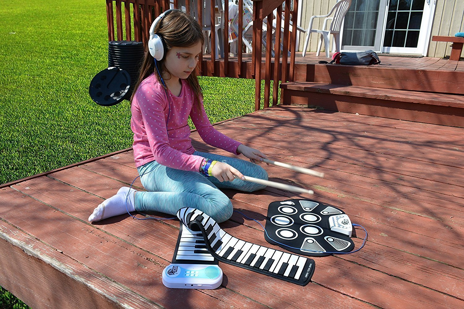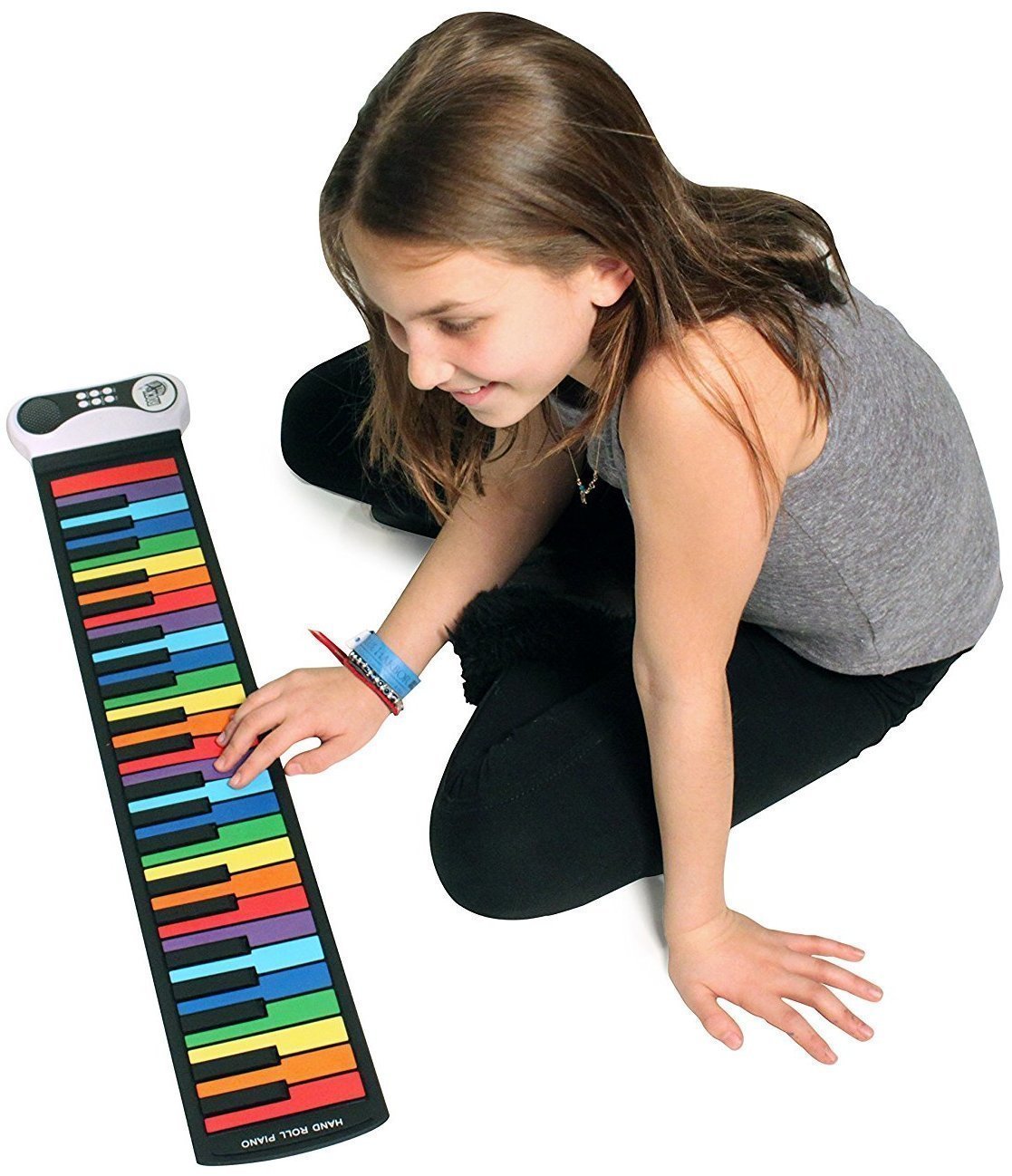 Еластичне та портативне кольорове піаніно з серії Rock and Roll It, ідеальне для початківців музикантів, які цікавляться піаніно, або для дітей. Приходить з інструкцією співу та упаковкою вікон. Виготовлене з силіконового матеріалу, що дозволяє йому згортатися та подорожувати в рюкзаку, а також живитися від USB або акумулятора.