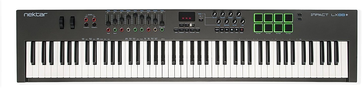 88-клавішний контролер з клавіатурою MIDI USB. Impact LX88+ обладнаний 88 чутливими на дотик клавішами і є повністю сумісним з практично всіма професійними, популярними програмами DAW для музичного виробництва. Завдяки чотирьом кривим швидкості, які поступово збільшують динаміку, користувач має свободу вибору відповідного стилю гри.