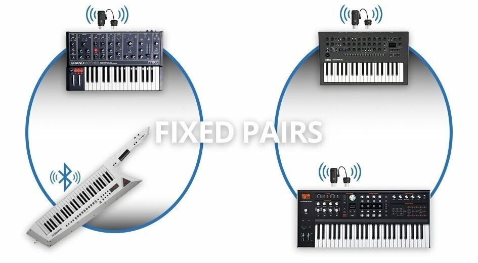Щоб отримати безпосереднє з’єднання MIDI-MIDI, просто підключіть другий набір WIDIFLEX до пристрою, з яким ви хочете з’єднатися. Автоматичне парування автоматично з’єднує обидва пристрої, і ви можете розпочати повноцінний двосторонній трансфер усіх даних MIDI, включаючи MIDI Clock та MPE.