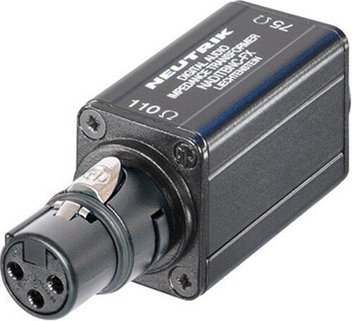 Кабельний адаптер з жіночим роз’ємом XLR 110 Ω на вхід та жіночим BNC 75 Ω на вихід. Цей інтерфейс забезпечує збалансоване з’єднання та концентричні лінії.