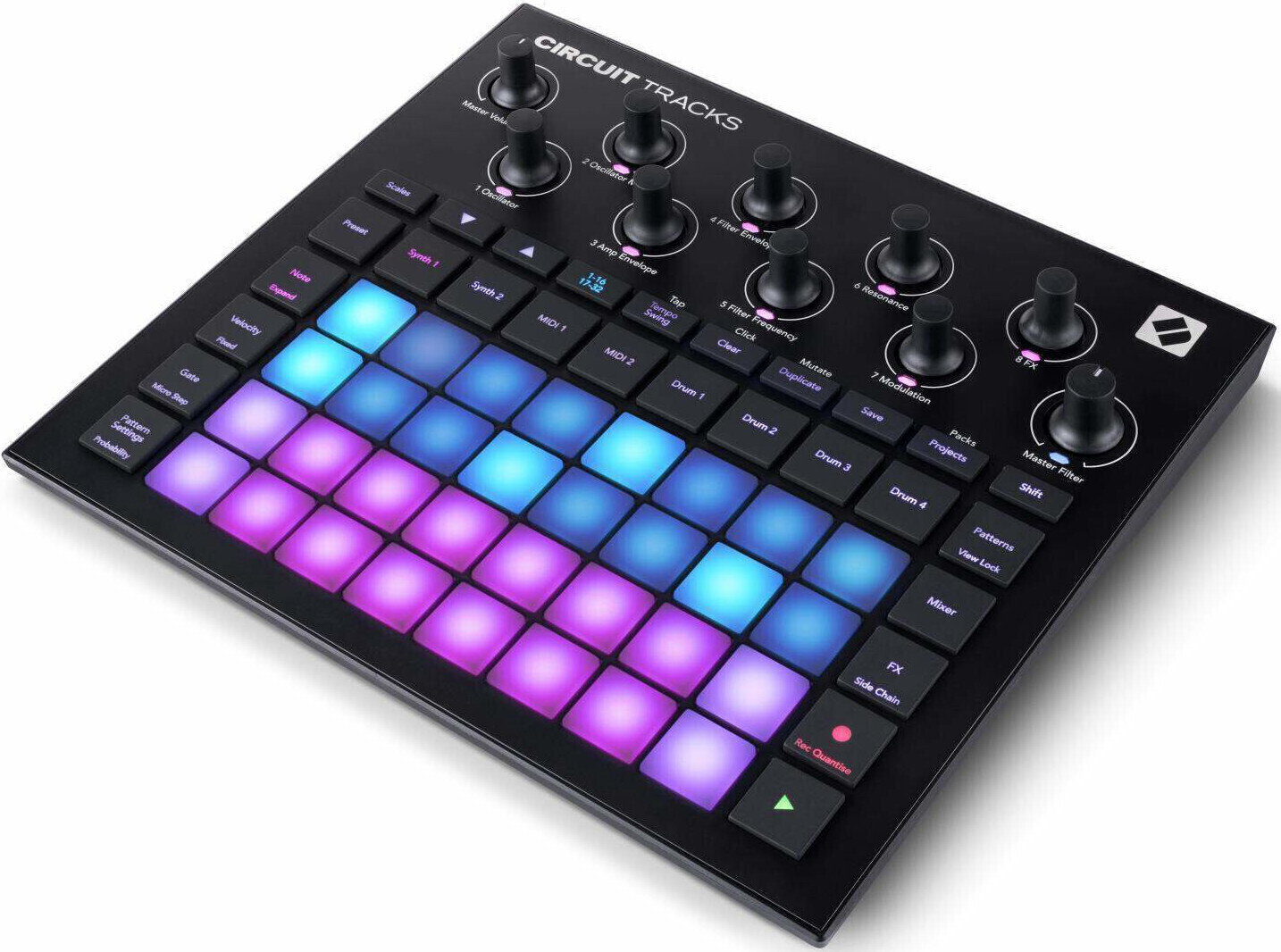 Circuit Tracks — це неймовірний самостійний groovebox для сучасного продюсера. Завдяки двом вишуканим поліфонічним шляхам цифрового синтезатора, чотирьом перкусійним шляхам, креативним ефектам та можливостям для роботи на ходу, це ідеальний інструмент для ефективного музичного творця.