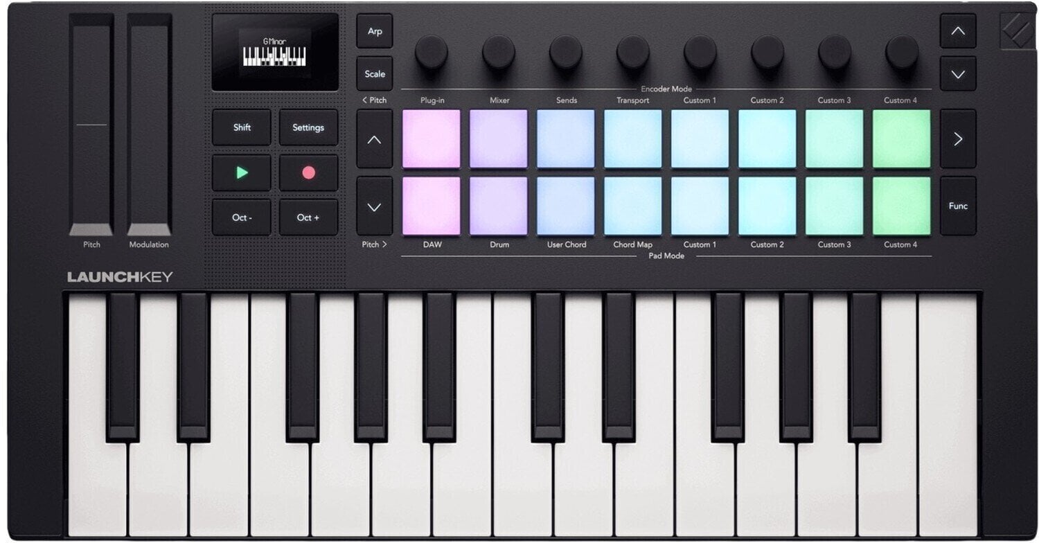 Цей Launchkey Mini 25 MK4 від Novation — компактний і потужний контролер DAW, розроблений для покращення вашого творчого процесу. Ось деякі з його ключових функцій: