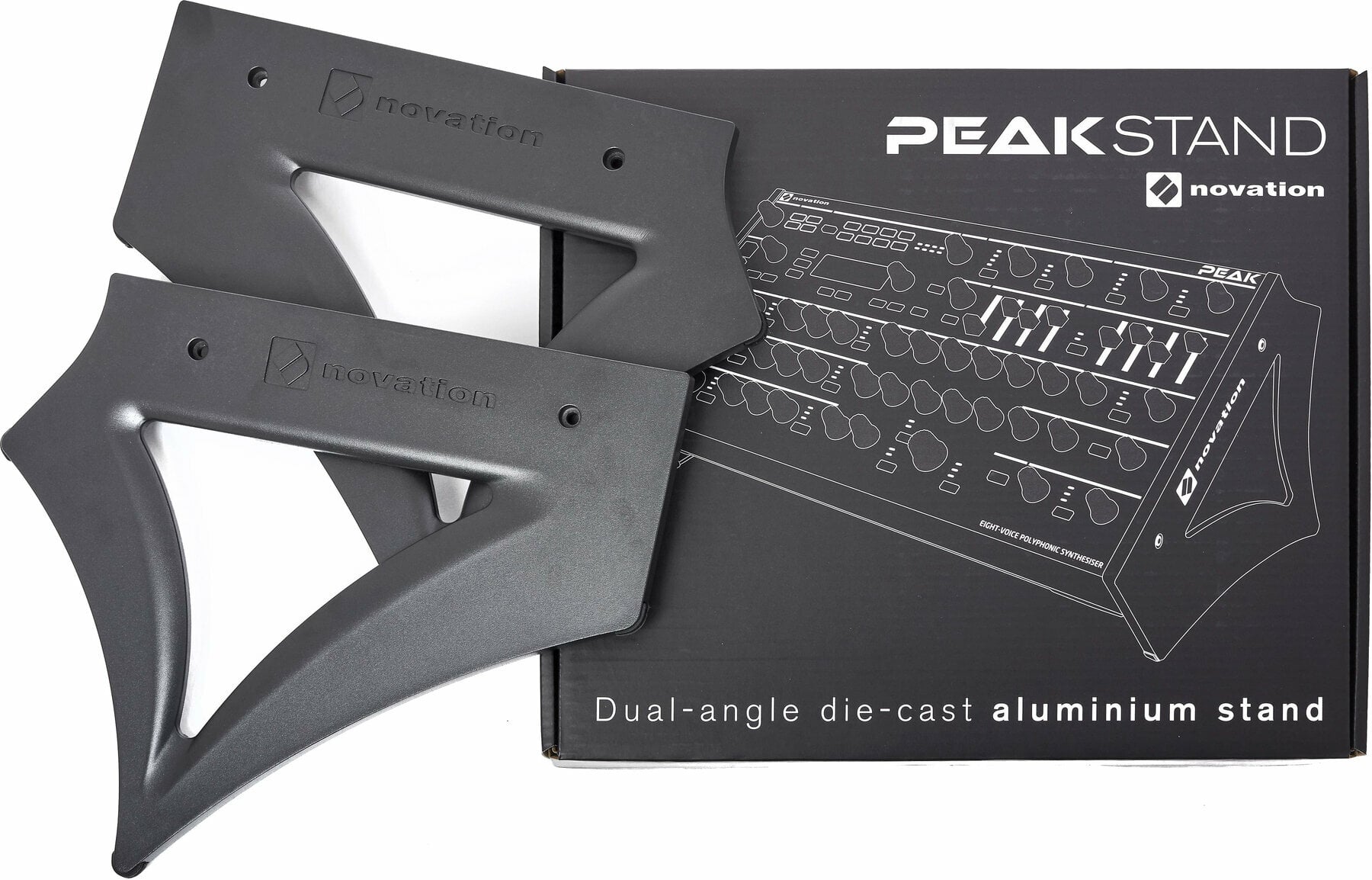 Алюмінієві бічні стінки для Novation Peak. Два види монтажу дозволяють встановити пристрій під двома різними кутами.