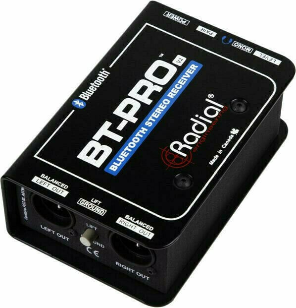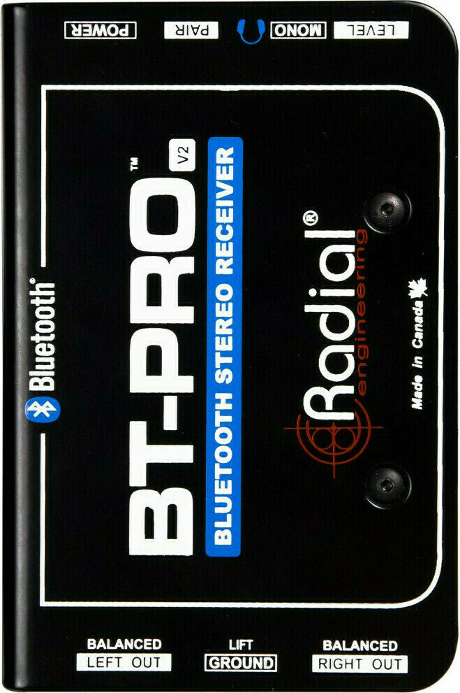 BT-Pro V2 — це безпосереднє пристрій, яке підтримує технологію Bluetooth, що дозволяє бездротово підключатися до смартфонів, планшетів та інших мобільних пристроїв. Пристрій забезпечує пару симетричних аналогових виходів аудіо для живлення системи PA.