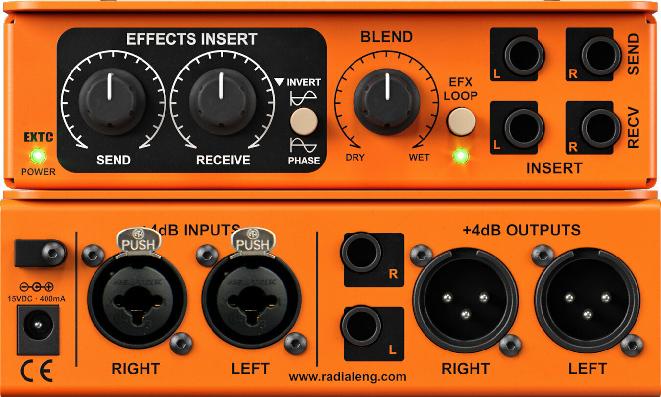 EXTC Stereo дозволяє підключати гітарні ефект-педалі до входів і виходів професійного аудіообладнання, такого як інтерфейси для запису та мікшувальні консолі. Це дає можливість включити стерео-педалі у ваші записи та відкривати нові креативні можливості.