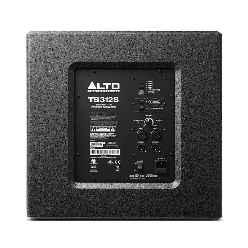 Потужне і чисте звучання – це тільки половина справи. Сабвуфер повинен стати частиною системи звукопідсилення, непомітно і акуратно підмішуючи своє звучання до широкосмугової акустичної системі. І новий TS312S чудово впорається з цим. Всі сабвуфери серії TS300 обладнані спеціальним DSP, який може працювати в одному з шести режимів, оптимізуючи частоту кросовера і частотний відгук сабвуфера для ідеальної сумісності з активними акустичними системами. Чотири з шести режимів призначені для спільної роботи з популярними АС Alto серії TS2 і TS3, а інші два режими (Hi-Pass і Bypass) відмінно підійдуть для використання з акустичними системами інших виробників.
